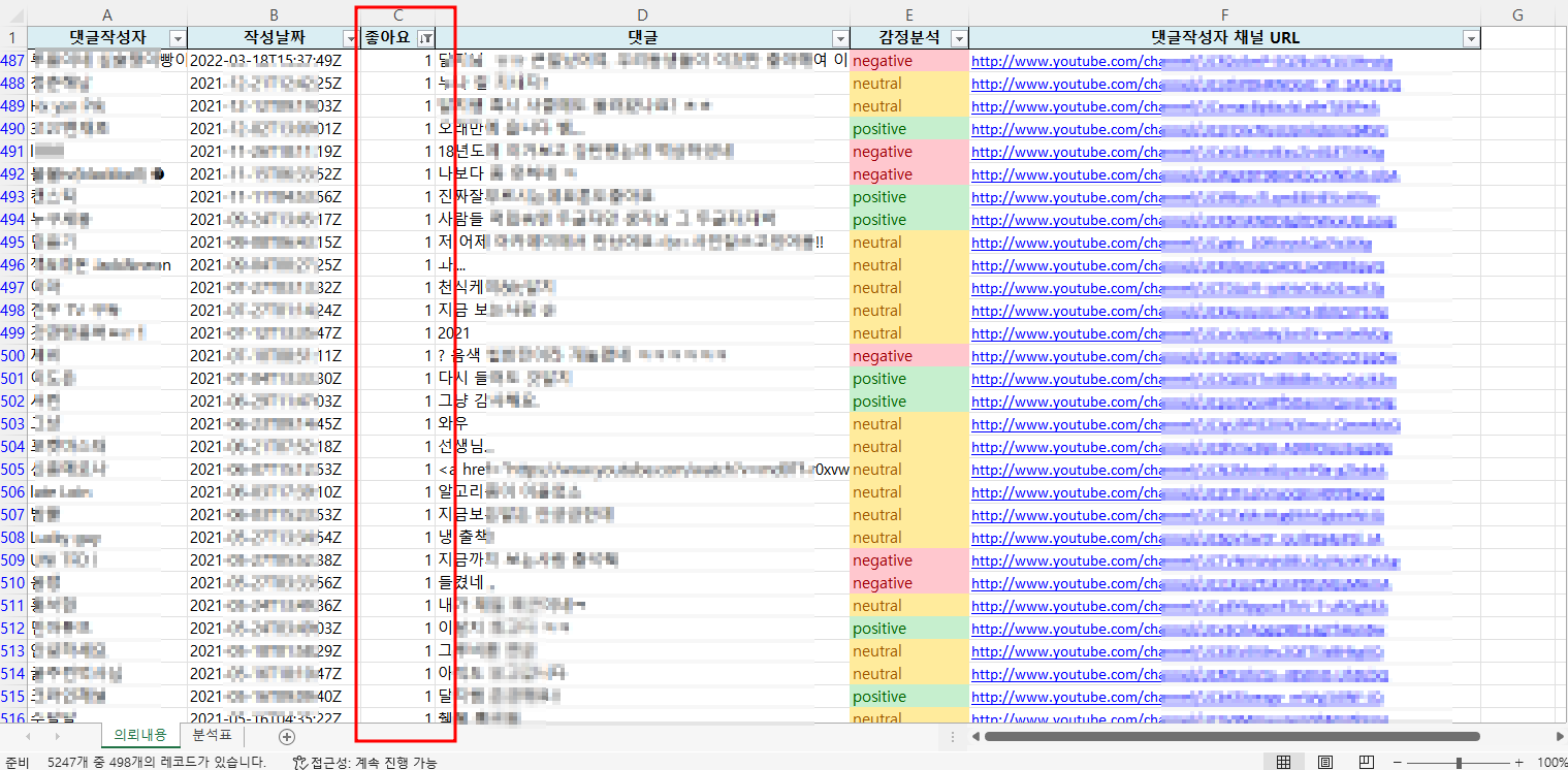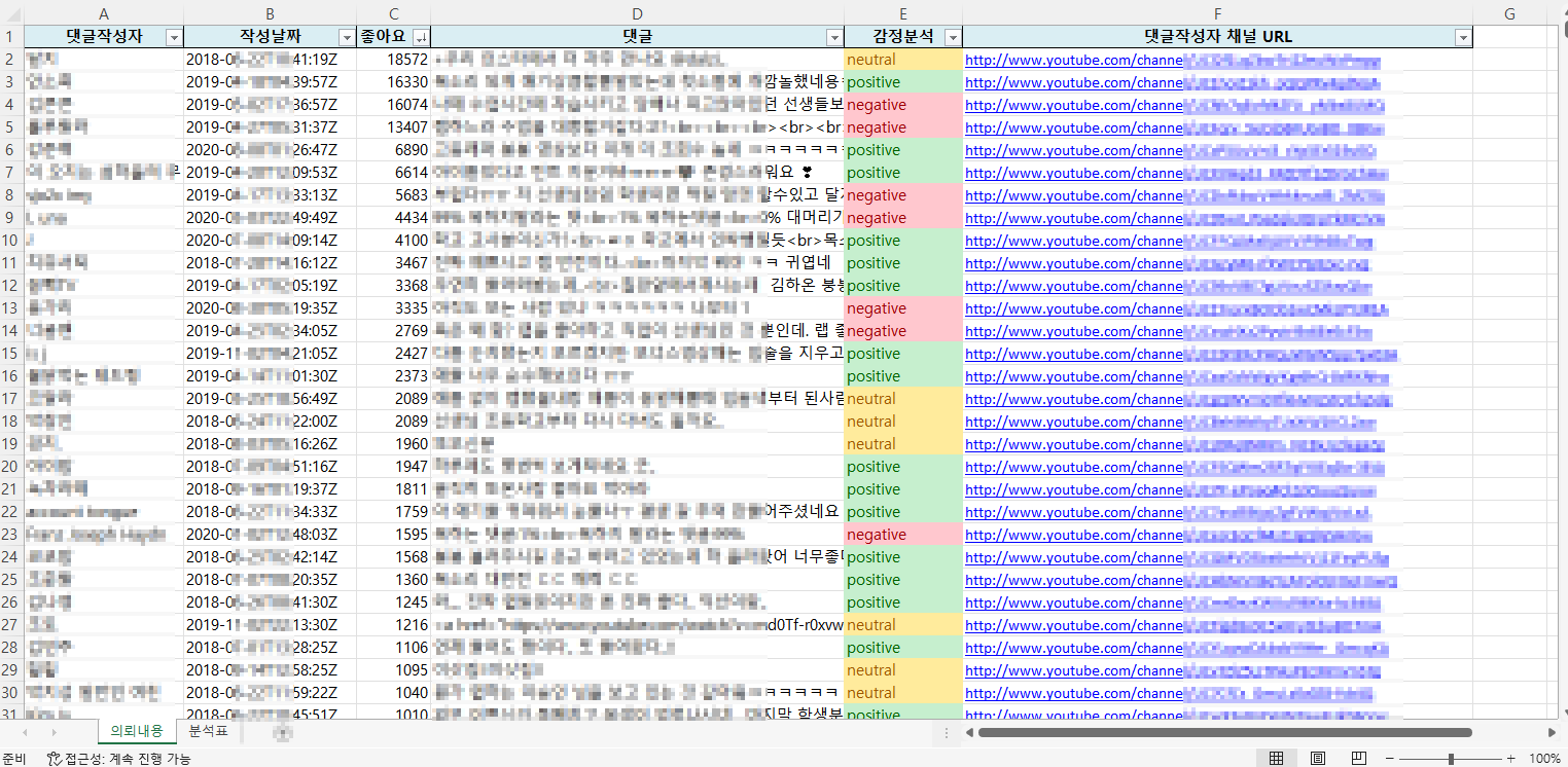 유튜브댓글 엑셀수집,워드클라우드, 감정분석해 드립니다.