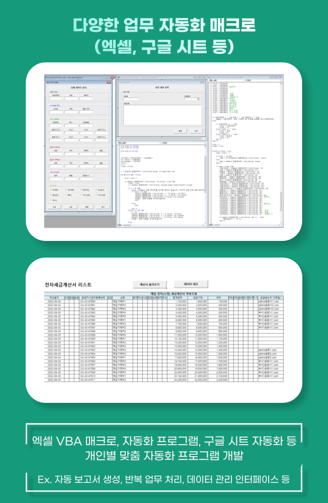 모든 업무 자동화 프로그램 개발해드립니다.