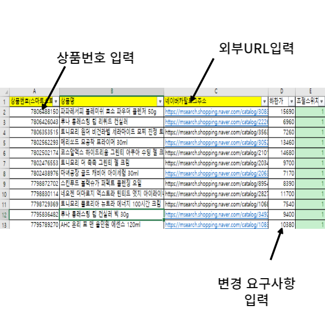 스마트스토어/카페24/쿠팡 상품 자동 등록 및 수정