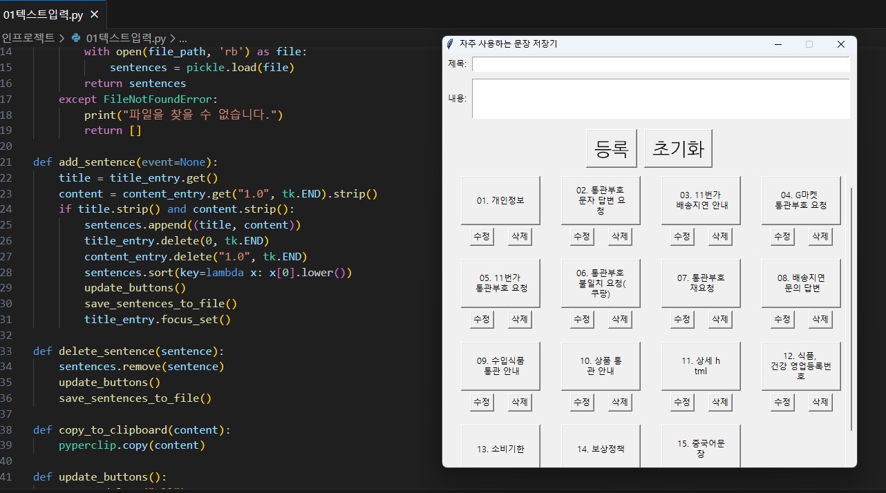 반복되는 업무로시간과 집중력을 소모하고 계신가요?엑셀 입력, 파일 정리,웹 반복 작업, PC 수작업 등수동으로 처리하던 업무를 자동화 프로그램으로 제작해드립니다.실제 사용 환경을 기준으로업무 흐름을 분석하고바로 활용 가능한 맞춤 자동화를 제공합니다.자동화를 통해- 반복 작업 자동 처리- 작업 시간 단축- 휴먼 에러 최소화업무 효율 개선을 위한실전형 자동화 개발을 진행합니다.※ 자동화 범위는 사전 협의된 업무에 한합니다.※ 불법·약관 위반·계정 차단 위험 작업은 진행하지 않습니다. 상담 요청원하시는 동작과 자동화할 업무를 구체적으로 설명해 주세요. 견적 및 기간 안내요청 내용을 검토한 뒤 작업 가능 여부, 금액, 기간을 안내드립니다. 개발 진행견적 수락 및 결제 완료 후 개발이 시작됩니다. 완성 및 수정완성된 결과물에 대해 사전 협의된 범위 내에서 수정을 진행합니다.※ 최초 요구사항과 다른 기능 추가·변경은 추가 비용이 발생합니다. 추가 상담 및 일정 조정작업 중 불명확한 사항은 상담을 통해 확인하며,요청 변경·소통 지연 시 작업 기간이 늘어날 수 있습니다. 필요 자료 제공작업에 필요한 자료는 개발 시작 전 전달해 주세요.참고 자료, 예제 파일이 있다면 함께 제공해 주세요.로그인이 필요한 작업은 테스트용 계정 제공이 필요합니다. 일정 관련 안내특정 마감일이나 우선순위가 있다면 견적 요청 시 미리 알려주세요.사전 안내되지 않은 일정 요구는 반영이 어려울 수 있습니다. 소통 협조작업 진행을 위해 원활한 소통이 필요합니다.자료 전달 지연이나 응답 지연 시 작업 기간이 늘어날 수 있습니다.