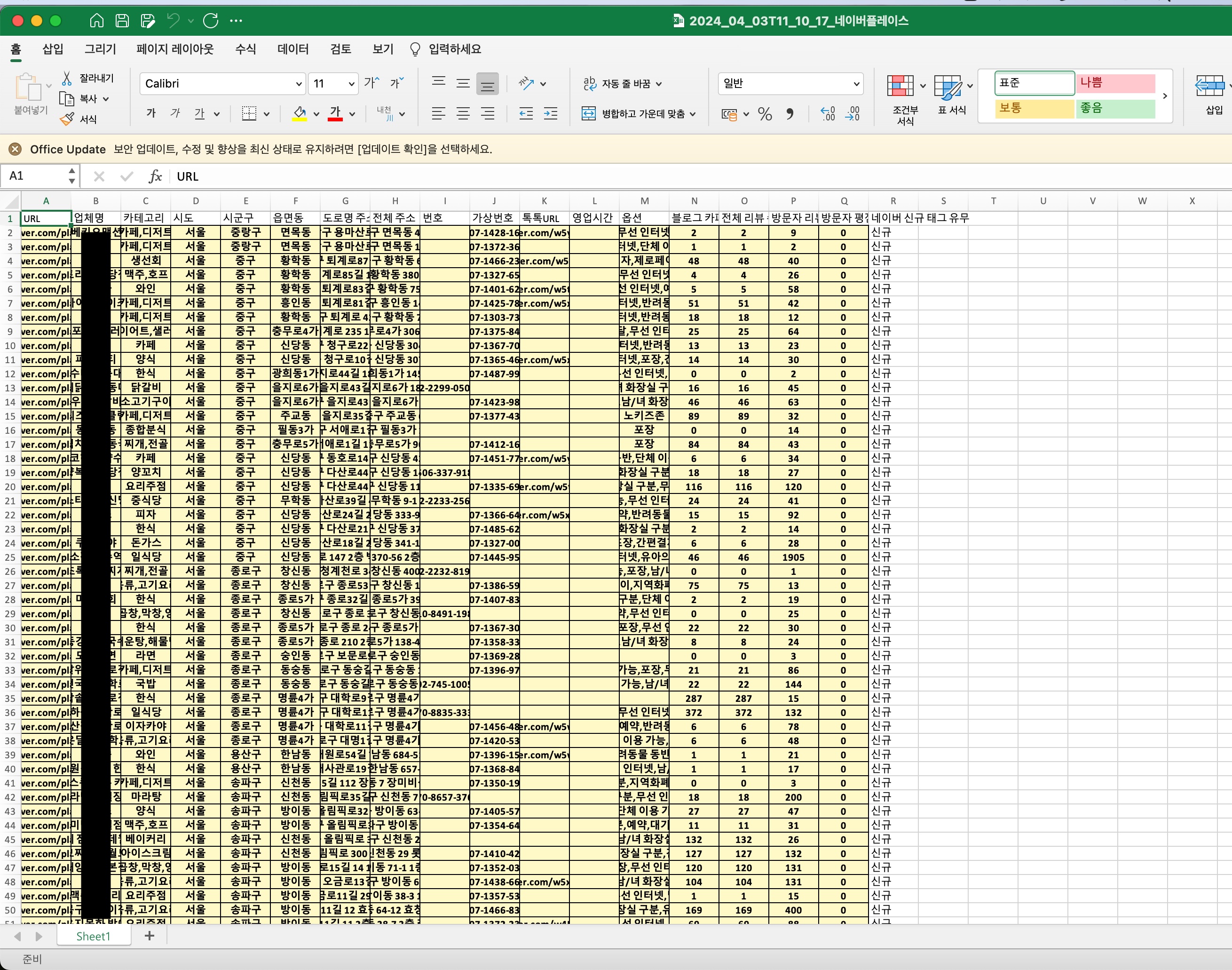N사 플레이스 지도 수집 프로그램 신규업체 추출 크롤링