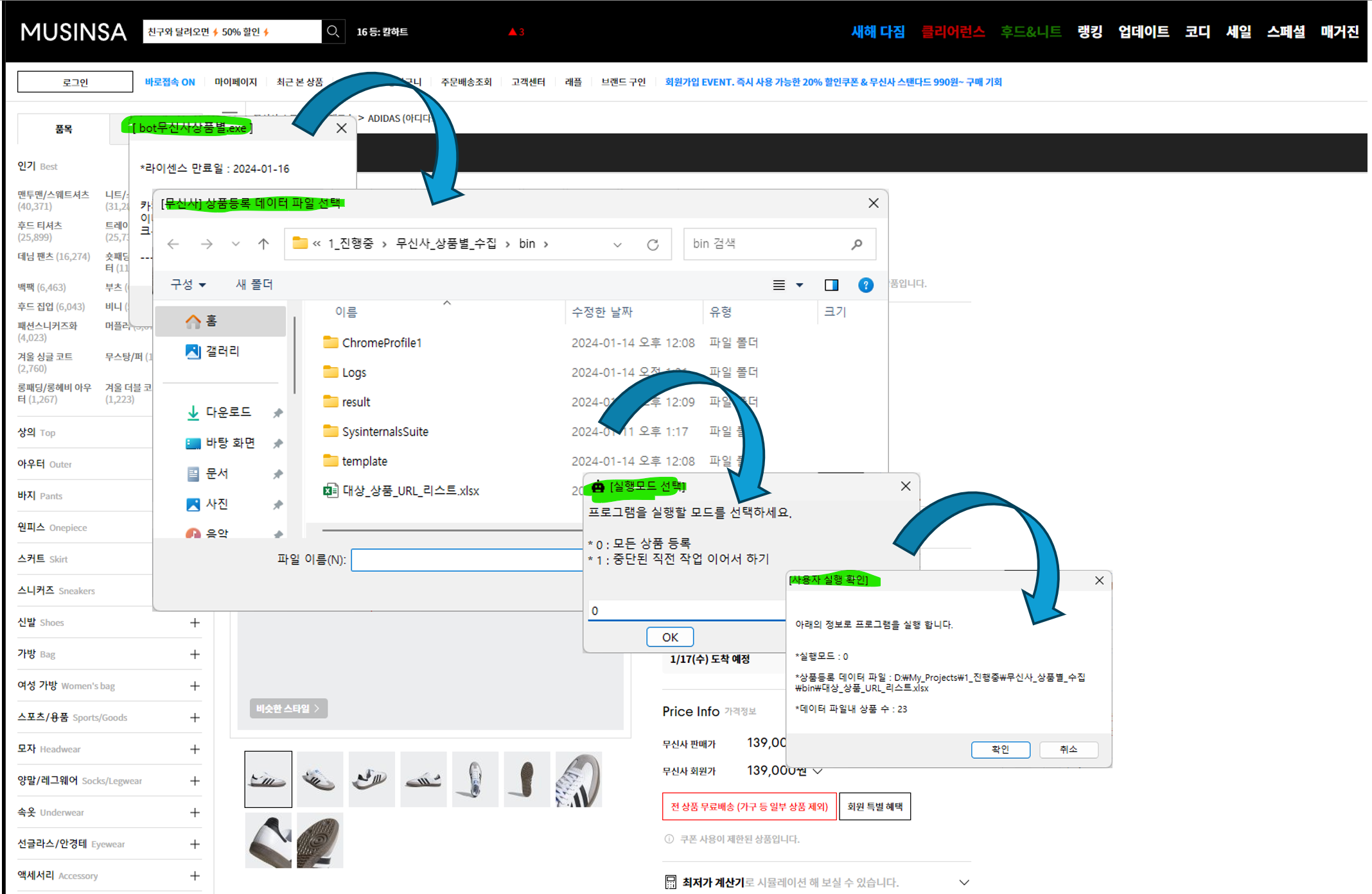 무신사, 상품정보 가져오기 봇 개발
