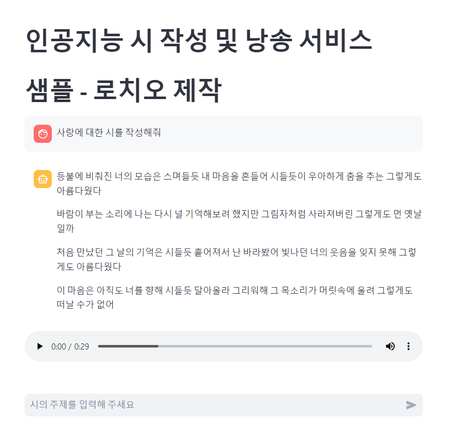 "물류, 금융, 행정, 서비스 등 국내 유수 기업 및 기관에게 AI 시스템을 납품하고 있습니다.""생성형 AI 이제 내 서비스에 도입할 때가 왔습니다.""AI 에이전트로 업무나 SNS를 자동화할 수 있습니다.""MCP가 글로벌 트렌드가 되고 있고, 생산성을 극대화 시키고 있습니다."바이낸스 거래소, 기업 DB 등을 연결하여 답변을 받거나 정보를 추출하여 생산성을 높일 수 있습니다>"Deepseek(딥시크), Llama(페이스북), Qwen(알리바바) 등무료 LLM을 내 개인 컴퓨터에 세팅하여 무제한 무료로 이용할 수 있습니다.""ChatGPT에서 검색, 질문해 보셨던 분들 주목해 주세요.""ChatGPT는 GPT 모델(LLM)을 기반으로 만든 챗봇일 뿐, 우리 서비스도 GPT 모델(LLM)이나 GEMINI 모델을 기반으로 맞춤형 인공지능(AI)를 탑재할 수 있습니다."ChatGPT와 같은 만능 챗봇, 스테이블 디퓨전, 달리와 같은 이미지 생성, 그 외에도 음성, PDF 문서 요약 등 원하는 인공지능(AI)을 개발하여 우리 서비스에 탑재할 수 있게 되었습니다.첨부된 영상을 보시면,챗봇, 음성 생성, 이미지 생성을 한번에 탑재한 인공지능 시 제작 서비스 샘플을 확인하실 수 있습니다. 이와 같이 다양한 AI 조합으로 신규 서비스를 출시할 수 있습니다. 우리 서비스에도 AI 도입이 가능할까? 고민하시는 분!간략하게 생각해 본 기획 30선을 소개 드립니다.서비스 도입 기획 예시) 1. 프로필 이미지 만들기2. 블로그 글쓰기3. 사주팔자4. PPT 작성 및 제작5. PDF 요약6. 작곡하기7. 작사하기8. 시집 만들기9. 전자책 만들기10. 유튜브 썸네일 만들기11. SNS 컨텐츠 만들기12. 웹소설 만들기13. 웹툰 만들기14. 시나리오 작가15. 영어 회화16. 번역기17. 게임 만들기18. 캐릭터 디자인19. 로고 디자인20. 굿즈 디자인21. 이모티콘 제작22. 표지 디자인23. 명함 디자인24. 인테리어 시각 디자인25. 가방 디자인26. 동화 작가27. SNS 마케팅28. 의상 디자인29. 영상 제작30. 버튜버 만들기:등등 무궁무진하게 많으며, 상상하는 것이 실현이 됩니다.고민하시는 분들 아래 항목 중 포함 되신다면 문의 주시면 인공지능(AI) 탑재 컨설팅 도와 드리겠습니다.디자인, 작문, 출판, SNS, 유튜브, 건축, 광고, 교육, 게임, 웹툰, 애니, 작곡, 의과학, 패션, 언론, 영화, 마케팅 등등 대부분의 업종에 도입 가능합니다.물론 기존에 보유하고 있던 나의 데이터를 GPT에게 학습(파인 튜닝) 시켜 내 서비스에 딱 맞게 운영이 가능합니다.생성형 AI가 활성화된지 3년차에 접어 들었습니다.지난해가 ChatGPT의 성능과 위력을 확인한 해였다면,올해는 똑똑한 GPT를 내 서비스에 도입하는 해가 되지 않을까 추측합니다.저희 팀은 1세대 블록체인 기업으로 8년째 블록체인 서비스를 운영하고, 개발해 나가고 있습니다. (다른 판매 서비스 참조) 그러던 와중에 GPT 프로그래밍을 습득하였고, AI와 블록체인을 결합한 서비스도 독자적으로 개발이 가능합니다.예를 들어 생성형 AI로 이미지를 만들어 NFT로 발행하고, NFT 마켓 플레이스에서 판매하는 것이 가능합니다.이 외에도 AI, 블록체인 각각의 서비스나 AI + 블록체인을 결합한 서비스 등 보유한 아이템에 따라 맞춤형 서비스 개발이 가능합니다.고민 되신다면 먼저 문의를 통해 상담을 받아 보시기 바랍니다. 1. 서비스 문의- 채팅 및 전화를 통한 서비스 문의2. 계약서 작성 및 결제 진행- 클라이언트 간 계약서 작성 및 비용 처리3. 서비스 제작 및 개발- 클라이언트 요청에 맞는 서비스 개발 및 제작4. 납품 및 사후 서비스- 서비스 납품 후 클라이언트 검수 후 추가 수정* 작업물 전달 후 의뢰인이 수정하고 싶은 곳이 있다면기존 작업물 내에서는 무상으로 진행이 가능합니다.=> 문구 변경, UI 배치, 폰트 색상 & 크기, 버튼 색상 & 크기, 이미지 변경 & 크기단, 작업물의 큰 틀을 좌지우지하는 기능들에 대한 부분 변경은 불가합니다.=> 의뢰한 내용이 아닌 기능 추가, 새로운 디자인 추가, 상향 상품에 준하는 기능 1. 간략한 서비스 기획- 서비스 컨설팅2. 이용자 페이지 프론트 디자인- 서비스를 출시할때 사용할 이용자 페이지 디자인3. WEB3.0 의뢰 시 블록체인에 컨트랙트 배포 시 필요한 Gas Fee- 컨트랙트 배포 시 사용되는 기본 수수료