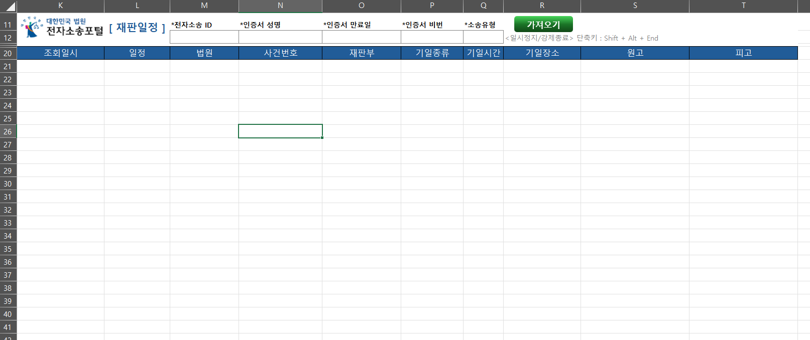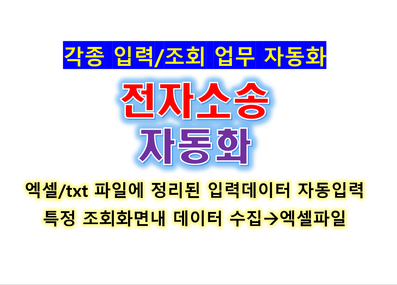 ##### 법원 전자소송 사이트 업무 자동화 #####https://ecfs.scourt.go.kr25년도 개편된 전자소송 사이트 자동화 가능-- 변호사 사무실 / 법무사 사무실 업무 자동화-- 각종 수기 컴퓨터 업무에 대한 고속 처리 및 사이트 오입력 방지-- 단순반복적적인 장시간 입력 업무에서 해방-- 텍스트 입력/ 항목선택/첨부파일 업로드 자동화-- 상황에 따른 입력/선택 항목 판단 가능자동 인증서 로그인 처리>-- 사용자가 설정한 인증서 정보로 해당 인증서를 선택후-- 로그인 자동화 구현회>-- 재판일정등 각종 데이터 조회 화면-- 조회 데이터를 특정 양식의 엑셀 파일로 생성-- 사이트에 입력할 데이터 항목들은 엑셀 파일에 정리/저장-- 각종 첨부파일들은 특정 폴더에 정리-- 신분증 및 각종 서류들의 이미지 파일에 대하여 고성능 OCR(이미지에서 텍스트 추출) 엔진을 이용하여 정확한 텍스트를 신뢰도 높게 처리 가능-- 추출된 데이터를 입력 엑셀 파일에 자동 저장 처리 가능-- 각종 원하시는 부가/편의기능 개발 가능-- 전자소송 사이트 자동 로그인-- 사이트의 특정 페이지에 접근하여 결과 혹은 진행내역 수집-- 신청인 및 의뢰인에게 자동 알림 발송(이메일/문자 등) 1. 세부상담2. 개발요건 합의3. 견적4. 결제5. 개발착수 및 의사소통6. 테스트 버전 완료 및 테스트, 의뢰인/개발자 상호 피드백 중요7. 개발완료 및 구매확정8. 보증기간 진행, 에러/장애에 대한 무상기술지원9. 보증기간 만료후 건별 유상기술지원10. 기능확장 및 추가기능 개발 발주, 의뢰인 필요시 1. 의뢰하실 개발 내용에 대한 정리2. 기술적 사항으로 기획에 어려움이 있다면 무료 기술 상담 가능