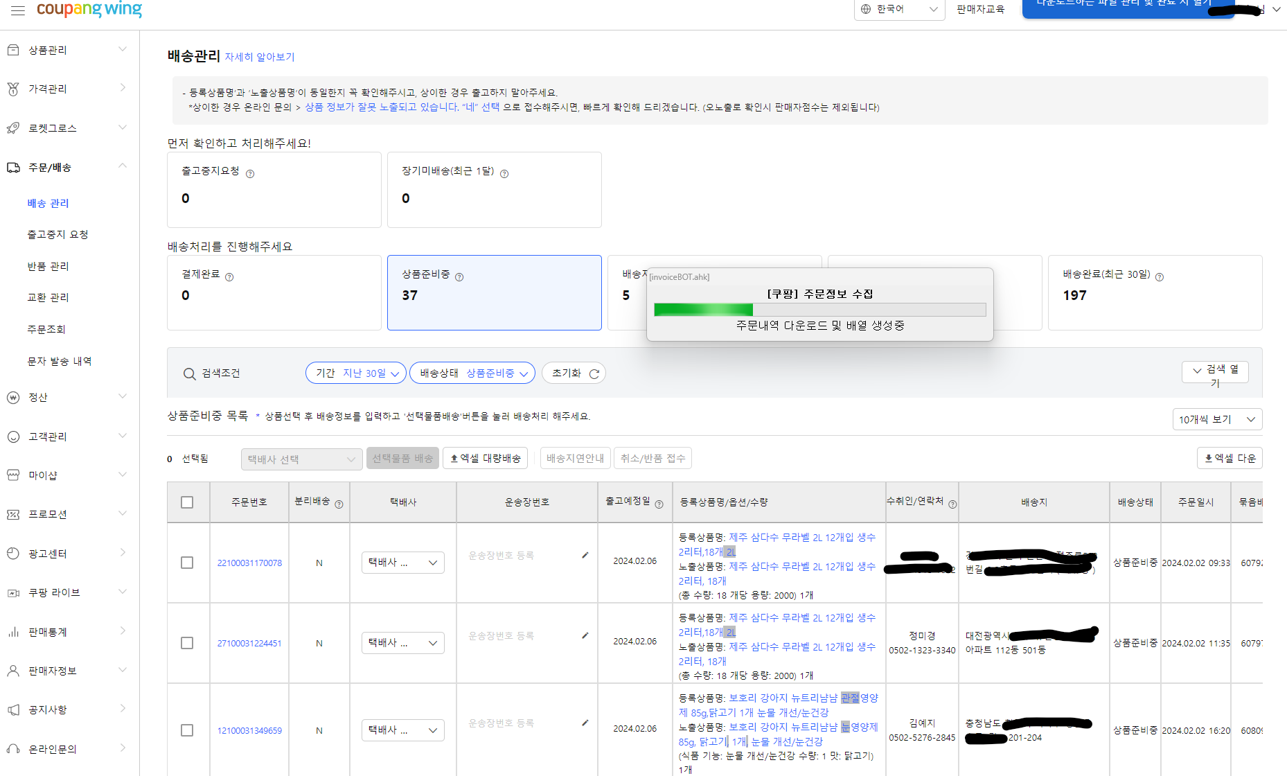 온라인 스토어, 배송처리 자동화 프로그램 개발