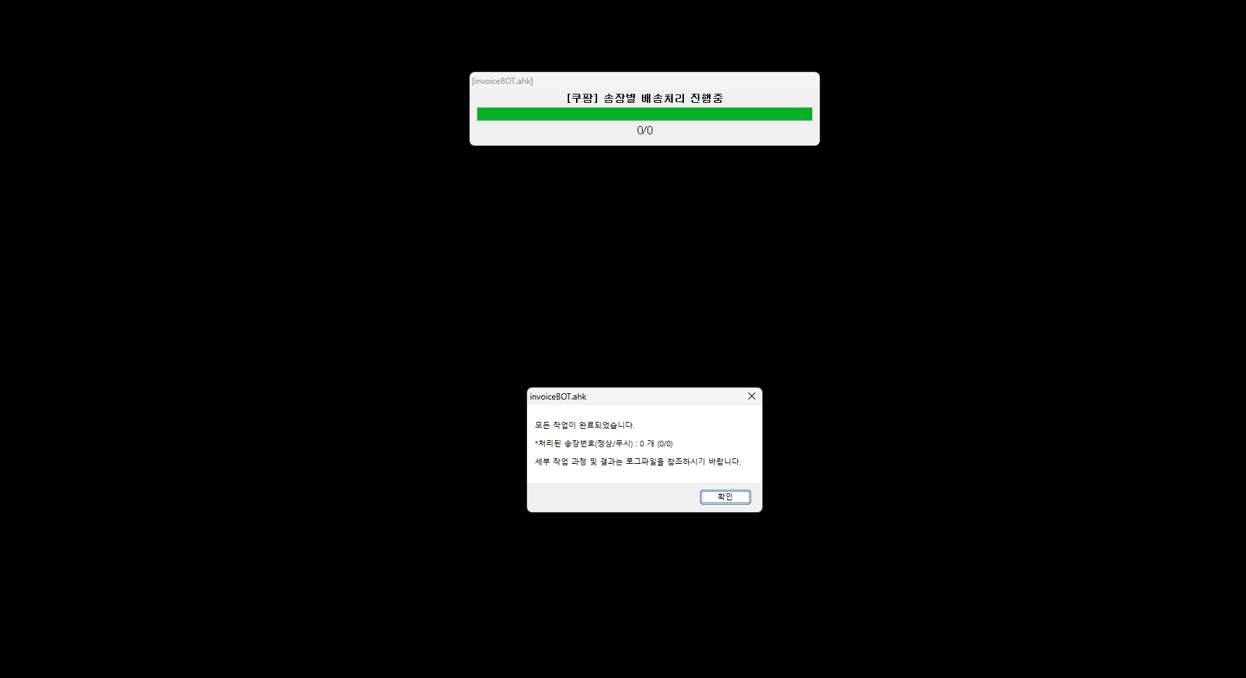 ###### 송장번호/택배사명, 자동 조회/입력 처리 #####리셀러 / 구매대행 업자분들에게 희소식지루하고 단순 반복적이면서 실수하기 쉬운 송장번호 입력 업무로 부터 "해방"-- 온라인 스토어에 들어온 배송대기중 주문건들에 대한 목록 확인-- 각 주문건에 대한 구매내역중 배송중건들에 대한 송장번호/택배사명등 수집-- 수집된 송장번호/택배사명등의 정보를 각 주문건에 입력후 배송으로 처리-- 매일 특정시간에 프로그램이 자동으로 작업 시작, 하루 수회 가능-- 작업 완료후 관리자에게 작업결과(처리건수 등)를 sms문자 메세지로 전송-- 기타 원하시는 모든 기능 구현 가능* 기본 보증기간 : 납품후 3개월, 기간중 장애/에러에 대한 무상기술지원* 기간 만료후 건별 유상기술지원 가능---- 다양한 프로그램의 개발상담 환영 ----- 1. 세부상담2. 개발요건 합의3. 견적4. 결제5. 개발착수 및 의사소통6. 테스트 버전 완료 및 테스트, 의뢰인/개발자 상호 피드백 중요7. 개발완료 및 구매확정8. 보증기간 진행, 에러/장애에 대한 무상기술지원9. 보증기간 만료후 건별 유상기술지원10. 기능확장 및 추가기능 개발 발주, 의뢰인 필요시 1. 의뢰하실 개발 내용에 대한 정리2. 기술적 사항으로 기획에 어려움이 있다면 무료 기술 상담 가능