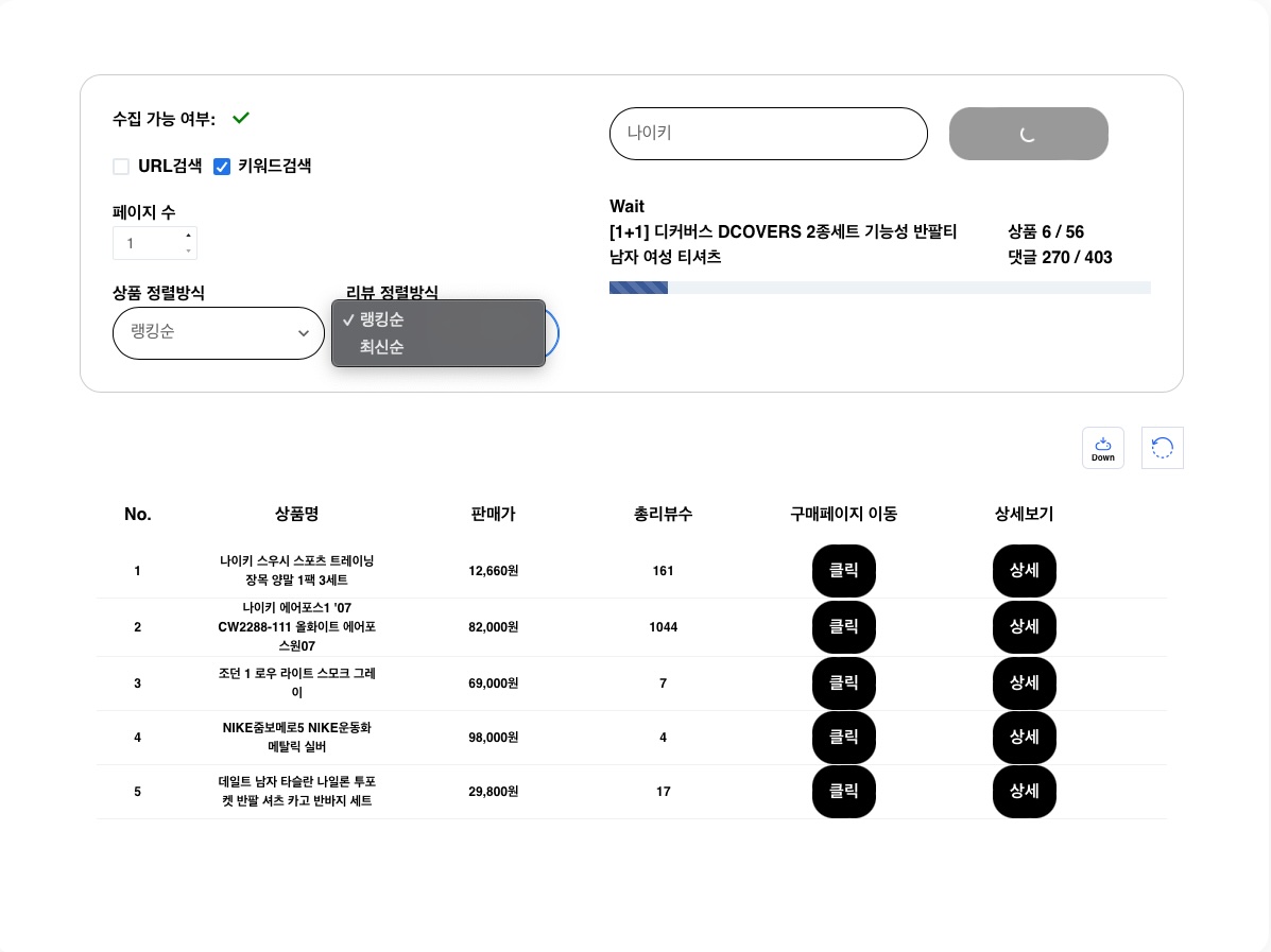 쿠팡 리뷰 상품 가격 데이터 수집 분석 프로그램 크롤링