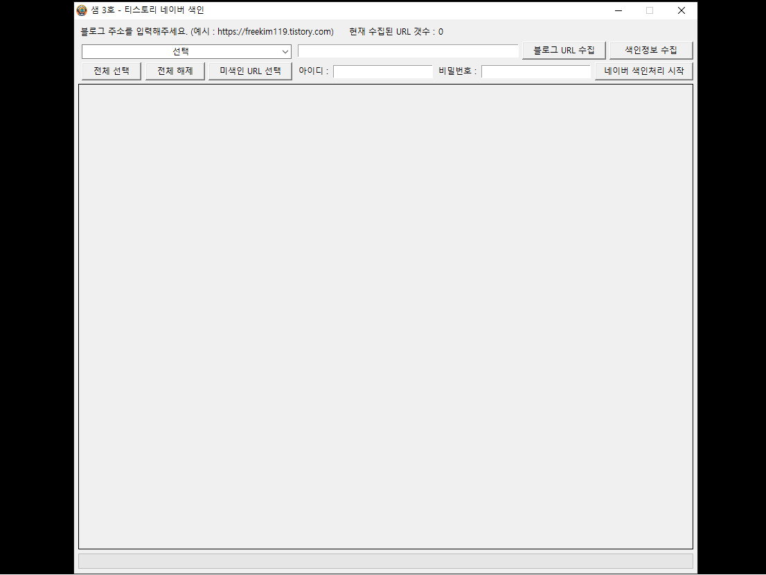 블로그를 만들고 나서 제일 먼저 해야 할 일과 색인의 중요성에 대해 먼저 말씀드릴게요.색인이라는 말 들어보셨지요?구글 색인이 되어 있어야 구글에서 검색해야 제대로 나온다.네이버 색인이 되어 있어야 네이버에서 검색해야 제대로 나온다.블로그를 만들고 글을 쓰기 전에 제일 먼저 해야 할 일이 무엇인지 아세요?모르신다고요? 큰일이네.자, 여러분이 중국집을 열었다고 상상해보세요.음식을 먼저 만드나요?아니죠. 음식을 만들기 전 주문을 받아야죠.주문은 그냥 들어오나요?아니죠. 주문을 받으려면 먼저 중국집이 여기에 있다고 알려야 합니다.그러면 다시 한번 물어볼게요.블로그에 글을 쓰기 전 제일 먼저 해야 할 일은 뭘까요?맞아요. 알려야 합니다.이게 제일 먼저 해야 할 일입니다.우선 사람들이 찾을 수 있도록 내 블로그의 주소를 알려야 하겠지요.이렇게 주소를 등록하는 행위를 사이트맵을 등록한다고 합니다.블로그에 글을 작성하면 이 사이트맵이라는 것에 내가 작성한 블로그 글의 주소가 적히게 됩니다.그러면 크롤러라는 것이 주기적으로 이 사이트맵을 읽어서 여러분의 블로그에 적힌 글의 주소를 검색엔진에 등록을 합니다.그런데 말이지요.네이버나 구글이나 세상의 아주 많은 정보를 가져오느라 바쁠텐데 내 블로그의 정보는 언제 가져갈까요?그러면 직접 할 수 있는 방법은 없을까요?암요! 직접 할 수 있지요.이러한 작업을 검색엔진에 색인을 등록한다고 합니다.하지만 직접 하면 시간도 많이 들고 지루하고 따로 관리도 되지 않습니다.요청만 하는 것일 뿐 실제로 처리가 되었는지 아닌지 알 길이 없거든요.일단 정리를 하자면 블로그를 만든 후와 글을 쓰고 난 후에 꼭 해야 할 일이 있습니다.1. 사이트맵 등록2. 검색엔진에 색인 등록색인 프로그램은 참 많고 방법도 많습니다.정상적으로 작동하는 프로그램을 찾는 것도 어렵지만 빠르게 답변해주고 도와주는 전문가를 찾는 것은 더 어려운 일입니다.고객님들과 대화를 하다 보면 프로그램만 툭 던지고 잘 될거니까 알아서 실행하고 사용하라는 사람도 꽤 있다고 하더군요.이런 저런 경우가 참 많겠지만 그래도 사람 사는 세상인데 사람 냄새 나는 세상이었으면 좋겠다는 생각을 합니다.일단 사이트맵은 자세하게 설명이 되어 있는 메뉴얼을 통하여 직접 등록하실 수 있도록 안내해 드립니다.난 못하겠다. 어떻게 하는지 모르겠다. 그냥 알아서 해줘.넵, 제가 원격으로 사람냄새 나게 직접 셋팅해드립니다.물론 프로그램을 구매해주셔야 겠지요?그러면 검색엔진에 색인은 어떻게 등록해?글을 하나씩 쓸때마다 등록해야 하는거야?아니죠. 우리에겐 멋진 친구 샘이 있으니까 걱정마세요.정식으로 소개합니다.티스토리 블로그 전용 네이버 색인 프로그램 샘 3호* 본 프로그램은 티스토리 블로그의 링크를 네이버 검색엔진에 색인을 하는 프로그램입니다.* 각 블로그와 검색엔진의 색인은 샘 시리즈 중 다른 버전으로 준비되어 있습니다.티스토리를 운영하는 분들이 네이버 검색엔진에 색인을 등록하는 작업을 자동화시킬 수 있는 프로그램입니다.네이버 검색엔진은 하루 50개 제한이 되어 있고 이 작업을 수동으로 하기란 정말 어려운 일입니다.실제로 저도 그렇게 수동으로 진행을 하다가 포기했었습니다.하지만 멋지고 강한 친구 샘은 하루 50개까지 자동으로 색인을 할 수 있습니다.그런데 하루 50개 밖에 할 수가 없느냐?아닙니다.편법을 사용하면 가능합니다.설치가 완료된 후 노하우를 공유합니다. (...속닥속닥...)* 본 프로그램을 사용하기 위해 꼭 진행되어야 할 작업이 있습니다.상세하게 작성된 메뉴얼이 제공되지만 어려우실 수 있습니다.이 경우 블로그 2개까지 제가 직접 셋팅해드릴 수 있고 그 이상은 추가 비용이 발생합니다.프로그램 특징1. 블로그의 주소 수집2. 검색엔진에 색인이 되어 있는지 확인3. 검색엔진에 색인 진행4. 색인 진행 여부 저장5. 개발자도 매일 사용하는 프로그램차별화 포인트프로그램 특성상 고객에게 프로그램 파일만 드리고 직접 사용하라고 하지 않습니다.고객님과 약속시간을 조율하고 약속한 시각에 맞추어 원격으로 프로그램을 제공하고 테스트를 완료합니다.주의사항본 프로그램은 완성된 프로그램 상품이며 고객님의 PC에 설치되는 프로그램에 개별 라이센스가 부여됩니다.개별 라이센스는 각 PC당 하나만 적용이 됩니다.해당 프로그램을 무단으로 복제하여 이용시 구매하신 라이센스는 중지될 수 있습니다.재설치 비용본 프로그램은 직접 원격으로 고객님의 환경에 맞추어 셋팅하고 테스트까지 해야 하기 때문에 고객님과의 시간을 조율하여 약속을 잡고 진행을 하게 됩니다.고객님의 사정에 의하여 부득이하게 재설치를 요청하실 경우 아래와 같이 진행됩니다.1. 프로그램이 정상적으로 작동하지 않는 경우 무료입니다.2. 프로그램을 실행하기 전까지의 과정을 고객님이 진행하여 원격으로 프로그램을 드리고 테스트만 진행하는 경우 재설치 비용 1만원이 발생합니다.2. 원격으로 프로그램을 실행하기 전까지의 과정을 포함하여 테스트까지 진행하는 경우 재설치 비용 3만원이 발생합니다.추가 