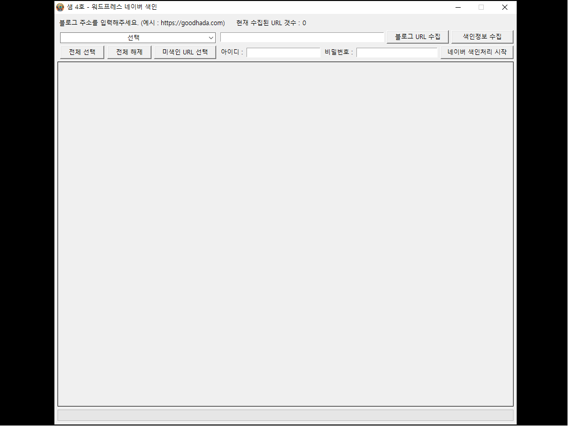 블로그를 만들고 나서 제일 먼저 해야 할 일과 색인의 중요성에 대해 먼저 말씀드릴게요.색인이라는 말 들어보셨지요?구글 색인이 되어 있어야 구글에서 검색해야 제대로 나온다.네이버 색인이 되어 있어야 네이버에서 검색해야 제대로 나온다.블로그를 만들고 글을 쓰기 전에 제일 먼저 해야 할 일이 무엇인지 아세요?모르신다고요? 큰일이네.자, 여러분이 중국집을 열었다고 상상해보세요.음식을 먼저 만드나요?아니죠. 음식을 만들기 전 주문을 받아야죠.주문은 그냥 들어오나요?아니죠. 주문을 받으려면 먼저 중국집이 여기에 있다고 알려야 합니다.그러면 다시 한번 물어볼게요.블로그에 글을 쓰기 전 제일 먼저 해야 할 일은 뭘까요?맞아요. 알려야 합니다.이게 제일 먼저 해야 할 일입니다.우선 사람들이 찾을 수 있도록 내 블로그의 주소를 알려야 하겠지요.이렇게 주소를 등록하는 행위를 사이트맵을 등록한다고 합니다.블로그에 글을 작성하면 이 사이트맵이라는 것에 내가 작성한 블로그 글의 주소가 적히게 됩니다.그러면 크롤러라는 것이 주기적으로 이 사이트맵을 읽어서 여러분의 블로그에 적힌 글의 주소를 검색엔진에 등록을 합니다.그런데 말이지요.네이버나 구글이나 세상의 아주 많은 정보를 가져오느라 바쁠텐데 내 블로그의 정보는 언제 가져갈까요?그러면 직접 할 수 있는 방법은 없을까요?암요! 직접 할 수 있지요.이러한 작업을 검색엔진에 색인을 등록한다고 합니다.하지만 직접 하면 시간도 많이 들고 지루하고 따로 관리도 되지 않습니다.요청만 하는 것일 뿐 실제로 처리가 되었는지 아닌지 알 길이 없거든요.일단 정리를 하자면 블로그를 만든 후와 글을 쓰고 난 후에 꼭 해야 할 일이 있습니다.1. 사이트맵 등록2. 검색엔진에 색인 등록색인 프로그램은 참 많고 방법도 많습니다.정상적으로 작동하는 프로그램을 찾는 것도 어렵지만 빠르게 답변해주고 도와주는 전문가를 찾는 것은 더 어려운 일입니다.고객님들과 대화를 하다 보면 프로그램만 툭 던지고 잘 될거니까 알아서 실행하고 사용하라는 사람도 꽤 있다고 하더군요.이런 저런 경우가 참 많겠지만 그래도 사람 사는 세상인데 사람 냄새 나는 세상이었으면 좋겠다는 생각을 합니다.일단 사이트맵은 자세하게 설명이 되어 있는 메뉴얼을 통하여 직접 등록하실 수 있도록 안내해 드립니다.난 못하겠다. 어떻게 하는지 모르겠다. 그냥 알아서 해줘.넵, 제가 원격으로 사람냄새 나게 직접 셋팅해드립니다.물론 프로그램을 구매해주셔야 겠지요?그러면 검색엔진에 색인은 어떻게 등록해?글을 하나씩 쓸때마다 등록해야 하는거야?아니죠. 우리에겐 멋진 친구 샘이 있으니까 걱정마세요.정식으로 소개합니다.워드프레스 블로그 전용 네이버 색인 프로그램 샘 4호* 본 프로그램은 워드프레스 블로그의 링크를 네이버 검색엔진에 색인을 하는 프로그램입니다.* 각 블로그와 검색엔진의 색인은 샘 시리즈 중 다른 버전으로 준비되어 있습니다.워드프레스를 운영하는 분들이 네이버 검색엔진에 색인을 등록하는 작업을 자동화시킬 수 있는 프로그램입니다.네이버 검색엔진은 하루 50개 제한이 되어 있고 이 작업을 수동으로 하기란 정말 어려운 일입니다.실제로 저도 그렇게 수동으로 진행을 하다가 포기했었습니다.하지만 멋지고 강한 친구 샘은 하루 50개까지 자동으로 색인을 할 수 있습니다.그런데 하루 50개 밖에 할 수가 없느냐?아닙니다.편법을 사용하면 가능합니다.설치가 완료된 후 노하우를 공유합니다. (...속닥속닥...)* 본 프로그램을 사용하기 위해 꼭 진행되어야 할 작업이 있습니다.상세하게 작성된 메뉴얼이 제공되지만 어려우실 수 있습니다.이 경우 블로그 2개까지 제가 직접 셋팅해드릴 수 있고 그 이상은 추가 비용이 발생합니다.프로그램 특징1. 블로그의 주소 수집2. 검색엔진에 색인이 되어 있는지 확인3. 검색엔진에 색인 진행4. 색인 진행 여부 저장5. 개발자도 매일 사용하는 프로그램차별화 포인트프로그램 특성상 고객에게 프로그램 파일만 드리고 직접 사용하라고 하지 않습니다.고객님과 약속시간을 조율하고 약속한 시각에 맞추어 원격으로 프로그램을 제공하고 테스트를 완료합니다.주의사항본 프로그램은 완성된 프로그램 상품이며 고객님의 PC에 설치되는 프로그램에 개별 라이센스가 부여됩니다.개별 라이센스는 각 PC당 하나만 적용이 됩니다.해당 프로그램을 무단으로 복제하여 이용시 구매하신 라이센스는 중지될 수 있습니다.재설치 비용본 프로그램은 직접 원격으로 고객님의 환경에 맞추어 셋팅하고 테스트까지 해야 하기 때문에 고객님과의 시간을 조율하여 약속을 잡고 진행을 하게 됩니다.고객님의 사정에 의하여 부득이하게 재설치를 요청하실 경우 아래와 같이 진행됩니다.1. 프로그램이 정상적으로 작동하지 않는 경우 무료입니다.2. 프로그램을 실행하기 전까지의 과정을 고객님이 진행하여 원격으로 프로그램을 드리고 테스트만 진행하는 경우 재설치 비용 1만원이 발생합니다.2. 원격으로 프로그램을 실행하기 전까지의 과정을 포함하여 테스트까지 진행하는 경우 재설치 비용 3만원이 발생합니