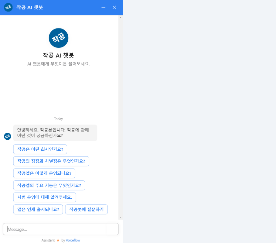 안녕하세요시중에 국내외 AI 챗봇 서비스 업체들이 많은데요, 저는 AI 챗봇 에이전트로 유명한 voiceflow, 음성 에이전트 분야의 선도적인 서비스 회사인 Vapi를 활용하여 비용 효율적이고, 지연시간이 짧은 음성 챗봇을 전문으로 제작하고 있습니다. voiceflow는 대부분의 LLM을 붙일 수 있고,다양한 지식 베이스를 사용할 수 있으며, 대화 로직에 있어서도 매우 복잡한 플로우도 해결할 수 있어 세계적으로 선호되고 있으며 Vapi는 아직 맞춤형 음성 에이전트가 활성화되지 않은 상황에서 최소의 비용으로 최소 지연으로 사용할 수 있도록 도와주는 서비스입니다. 특히, 초보자도 쉽게 운영이 가능하도록 만든 솔루션이기 때문에, 작업을 의뢰하시고 교육을 잠시 받으시면 충분히 직접 운영도 가능하십니다. (물론, 시나리오 변경시 api 연동이나, 외부 서비스 통합과 같은 고급 기능은 의뢰가 필요하실 수 있습니다.). 현재, 라마의 경우 무료 티어로 제공되는 토큰이 많아서 고객이 많지 않으시다면 분, 혹은 일 제한 토큰을 넘지 않으시는 경우도 많습니다. 한 번 고객이 되시면, 최소한의 비용으로 운영가능하시도록, LLM에 대한 소식도 이메일로 공지해드립니다. 음성 에이전트의 지식베이스(텍스트, 구글시트, pdf, 웹페이지 등)를 제공해주시면 별도의 기본 서비스 이용료만 받고, 체험시켜드릴 수도 있습니다. 부담없이 문의주시기 바랍니다. 감사합니다. 1. 고객의 문의 및 상담2. 금액 협의 및 결제3. 프로젝트 착수 전 주요 사항 체크4. 프로젝트 진행5. 중간 보고 및 피드백 반영6. 최종 산출물 전달7. 프로젝트 완료 1. Standard지식 베이스로 사용하실 pdf, txt, docx 등 확장자 파일(10mb이하), URL, 웹사이트의 경우 Sitemap, 일반 텍스트 입력도 가능하며, 미리 준비해주시면 감사하겠습니다. 2. DeluxeStandard 서비스 준비 사항을 포함하여,Elevenlabs의 음성을 사용하신다면 해당 서비스 회원 가입이 필요합니다. 3. Premium맞춤형 시나리오에 대한 논의 및 간단한 기획서 필요