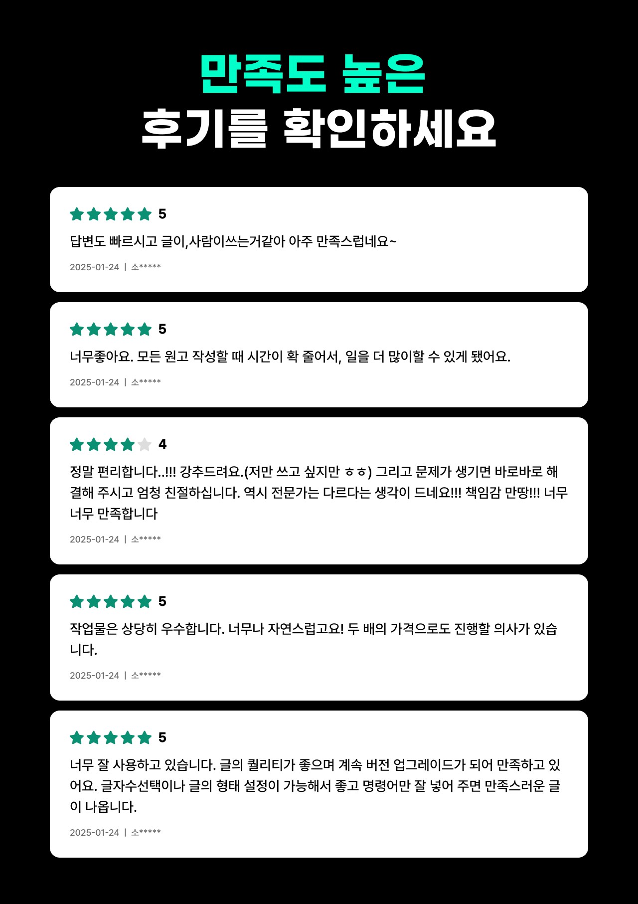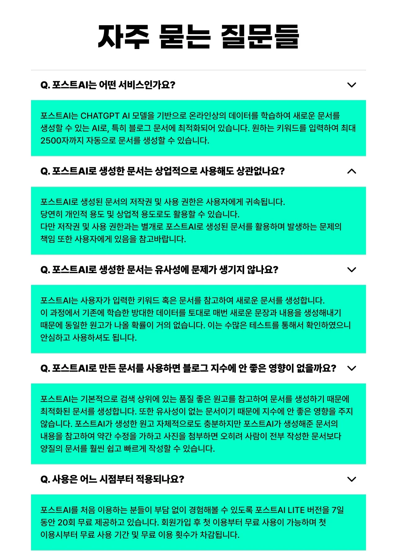 크몽 누적 판매 1만건 달성한 크몽 MASTER가 수년간 축적한 블로그 관리 노하우로 개발한 [포스트AI]로 유사無! 중복無! 누락無! N사 최적화 포스팅 10초면 완벽히 만들어드립니다.AI로 사람이 쓴 것보다 더 자연스럽고 퀄리티 좋은 콘텐츠를 작성해보세요.대행사 & 실행사에서 사용하는 자동 포스팅 프로그램입니다.다른 어떠한 프로그램보다 탁월한 성능을 가지고 있음을 자신합니다.지금도 더 나은 기능과 성능을 위해 업데이트가 이뤄지고 있습니다.사용자들이 100% 만족하시는 데는 이유가 있습니다.특히 블로그 마케팅을 주로 하는 곳이라면 포스트AI는 또 다른 사업을 확장시킬 수 있는 좋은 무기가 될 수 있습니다. 고민하지 마시고 무조건 상담 신청해 주세요.* 포스트AI의 특징1. 포털 검색 상위에 있는 글을 참조하여 포스트AI가 새로운 글로 생성2. AI가 글을 작성해준다는 개념을 넘어 최적화 포스트를 생성해줍니다.3. URL 모드, 문서 모드 등 두 가지 모드 지원4. 후기성, 정보성 각각 다른 형태의 글 발행 지원5. 다양한 이미지 세탁 방식 기능6. 프롬프트 커스텀 기능 지원-> 개별적으로 원하는 방식을 입력하면 포스트AI가 참고하여 글을 생성7. 최대 2000자의 새로운 글 작성 가능8. 24시간, 365일 블로그 자동 발행9. 예약 발행 기능 지원8. 포털 지도 삽입, url 삽입, 태그 입력 기능 지원10. 히든이미지 삽입 기능11. 프로그램에 ChatGPT API가 적용되어 있어서 별도로 구매하거나 세팅할 필요가 없습니다. (타사들의 경우 사용 '무제한'이라고 하지만 사용자의 ChatGPT 계정을 연동시켜 별도 과금시킵니다.)- 영구 판매 1,320,000원이며, 이와는 별도로 발행료는 건 당 50원입니다.- 1,320,000원은 프로그램 영구 판매 비용입니다.- 이용 요금은 원하시는 금액을 충전 후 1회 글 생성 시 50원의 비용이 차감 됩니다.- 1PC 당 프로그램 1개 운영이 가능하며 추가 시 30% 할인된 가격에 드립니다.- 추가 기능이 필요한 경우 개발해드립니다.(옵션 별도)* 포스트AI는 커스터마이징 개발이 가능합니다. 글 형태나 차별화된 특정 기능(업체에 따라 별도의 세팅이 필요 없이 완전 자동화를 해야 하는 기능)을 적용해야 하는 독점적 형태의 프로그램이 필요하신 경우 문의 주세요. 크몽 안심번호 050409019355로 주시면 자세히 상담해드리겠습니다.* 자주 묻는 질문1. 포스트AI는 어떤 서비스인가요?포스트AI는 ChatGPT AI 모델을 기반으로 온라인상의 데이터를 학습하여 새로운 문서를 생성할 수 있는 AI로, 특히 블로그 문서에 최적화되어 있습니다. 원하는 키워드를 입력하여 최대 2500자까지 자동으로 문서를 생성할 수 있습니다.2. 포스트AI로 생성한 문서는 상업적으로 사용해도 상관없나요?포스트AI로 생성된 문서의 저작권 및 사용 권한은 사용자에게 귀속됩니다.당연히 개인적 용도 및 상업적 용도로도 활용할 수 있습니다.다만 저작권 및 사용 권한과는 별개로 포스트AI로 생성된 문서를 활용하며 발생하는 문제의 책임 또한 사용자에게 있음을 참고바랍니다.3. 포스트AI로 생성한 문서는 유사성에 문제가 생기지 않나요?포스트AI는 사용자가 입력한 키워드 혹은 문서를 참고하여 새로운 문서를 생성합니다. 이 과정에서 기존에 학습한 방대한 데이터를 토대로 매번 새로운 문장과 내용을 생성해내기 때문에 동일한 원고가 나올 확률이 거의 없습니다. 이는 수많은 테스트를 통해서 확인하였으니 안심하고 사용하셔도 됩니다. *프로세스는 아래와 같습니다.결제 -> 포스트AI 프로그램 세팅 및 제공 -> 아이디/비밀번호 발급 -> 편리한 이용 * 포스트AI는 웹기반에서는 할 수 없는 많은 기능을 제공하기 위해서 PC 설치형 프로그램으로 제작되었습니다.
