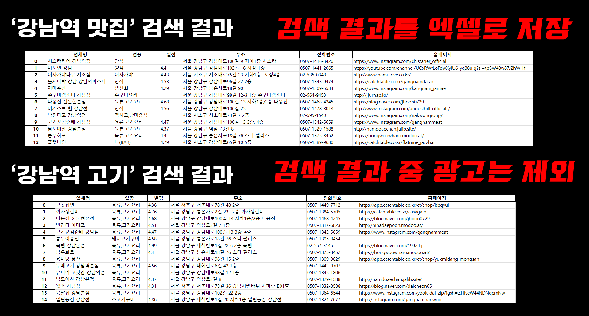 시원하게 싹 긁어드리겠습니다!! 문의 주시면 30분 안에 답장 드리도록 최선을 다하겠습니다!!반복적인 작업을 할 때 ! 내가 기계인가 ~ 노예인가~생각하실 때! 아, 맞다! 하고 저를 찾아주십쇼! ^-^7생각하고 계신 예산을 미리 말해주시고!제가 생각하는 금액과 큰 차이가 없다면, 최대한 맞춰드리겠습니다!!부담 없이 문의 하세요! ^0^사이트 주소와 양식을 알려주시면! 합리적인 가격으로누락 되는 데이터 없이 싸~악 긁어모아 대령하도록 하겠습니다.1. 상세하게 문의 하실수록 작업 속도가 빨라집니다! > 원하는 사이트와 결과물 양식을 알려주신다면 ! 거의 Super Sonic!2. 크롤링 결과는 Excel 파일로 정리해서 보내드립니다!3. 크롤링 난이도에 따라서 금액이 달라질 수 있습니다. 편하게 상담하시고, 협의하시기 바랍니다* 보안상 작업이 어려운 사이트이거나, 불법 또는 비정상적인 크롤링 문의는 받지 않습니다. 양해 바랍니다. 1. 상담요청하시는 사이트와 결과물 양식을 자세히 말씀해주시고,추가적으로 원하시는 부분 말씀 해주시면,확인 후 견적을 말씀 드리겠습니다!(양식 파일 있으면 더 좋아요)2. 결과물 전달상담 진행 후, 개발이 시작되면 취소가 불가능합니다~3. 수정 및 추가 개발오류나 누락된 부분이 있으면 수정 및 보완하여 마무리 합니다!추가 개발을 원하시는 경우, 또 또 찾아주세요 ^ㅡ^ 1. 크롤링 원하는 주소2. 원하는 데이터(예 1 : 뉴스에서 2024년 12월 25일, 헤드라인 뉴스 중 제목, 링크, 언론사 등 추출)(예 2 : 온라인몰의 특정 상품의 리뷰 정보(내용, 별점, 작성 시간 등 추출)