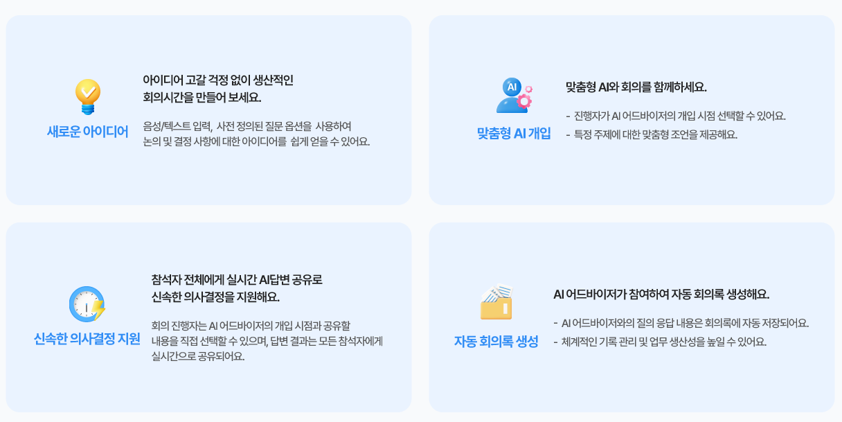 AI통번역, AI회의록, AI어드바이저 화상회의 서비스