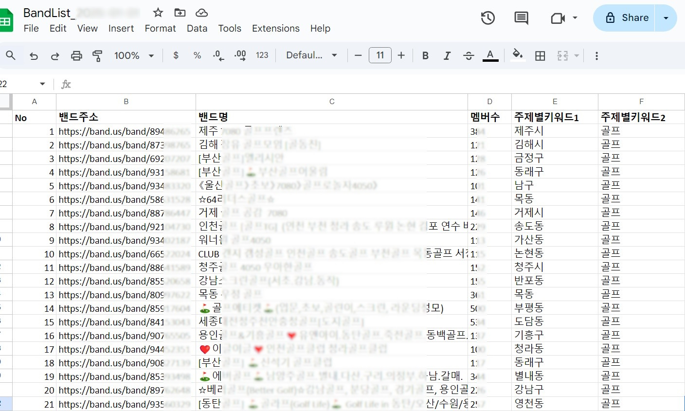 B모임 밴드리스트 추출 프로그램 제작해 드립니다.