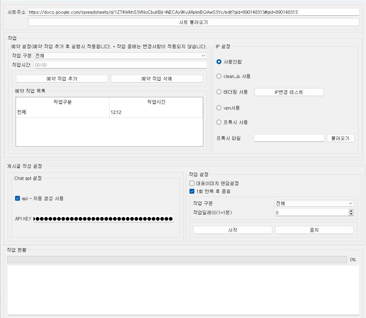 요즘 각종 블로그를 운영하시면서. 원고 작성에만 최소 1시간은 투자해보셨을겁니다.대중적인 AI서비스들을 사용해도. 원고가 정갈하지 않다던가. 분량이 나오지 않는 등의여러 이슈가 있습니다.오랜기간 개발해온 노하우를 녹여내어 최적의 가이드라인 제시와 원고발행까지 한큐에 도와주는 프로그램 입니다.또한 하루 24시간 pc앞에서 시간을 보낼 수 없다 보니 많은 분들이 단순 반복 업무들을프로그램화하여 사용하고 있습니다.본 프로그램 또한 그러한 고객들의 니즈를 만족시키고자 개발된 프로그램입니다.* 구글 시트 연동으로 인한 JOB관리 ( 구동중에도 글 제목/내용 등 수정 가능)* 예약 작업 설정을 통해 지정된 시간에만 글작성 가능.* 글작성시 등록되는 모든 이미지는 자동으로 모든 정보를 변환시켜, 새 이미지와 같은 형태로 등록되게 됩니다.* 이미지 결합을 통한 영상 자동 생성* 자유 양식 원고 생성으로, 다양한 방면으로의 포스팅 가능** 1pc 1프로그램이니 참고 부탁 드립니다. 00. 의뢰 접수01. 구글 시트 권한 부여02. 프로그램+설명서 전달03. 구동 테스트 및 확정 01. 추가기능이 필요하시다면 정리된 문서 파일02. N사 계정(본인 계정)03. 구글 시트 연동을 위한 G사 계정