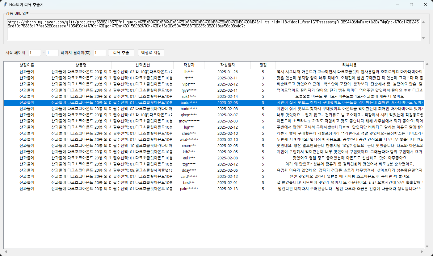 스마트스토어 상품 리뷰 수집 추출 프로그램
