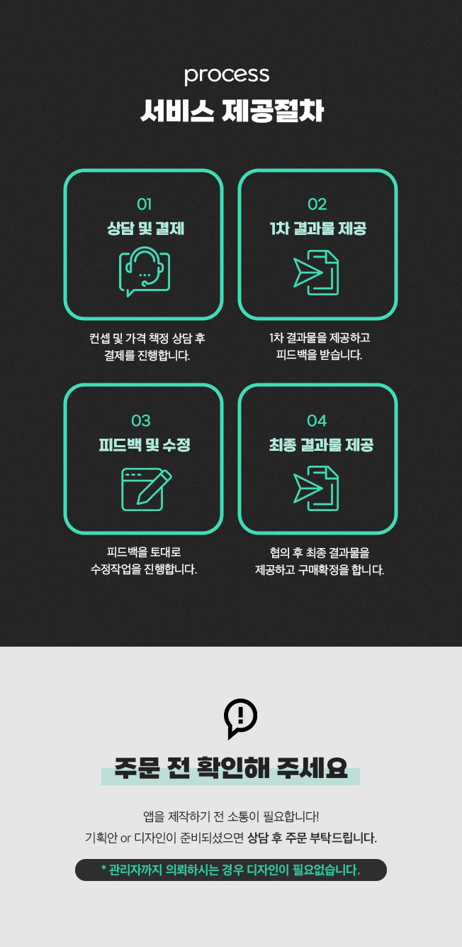 AI 기반 비즈니스 시대, 지금이 시작할 최고의 타이밍입니다! 자동화로 수익을 창출하고, 부업으로도 손쉽게 AI를 활용할 수 있는 시대가 열렸습니다.이제 막 시작하는 단계이므로, 빠르게 진입하는 것이 경쟁력을 확보하는 열쇠가 될 것입니다. 지금 바로 AI 비즈니스에 도전하세요! 안녕하세요 저희는 15년차 소프트웨어 개발을 해온 IT 전문개발업체입니다.전분야 다수의 어플 및 웹사이트,소프트웨어를 제작했습니다.외주개발 회사의 문제점이 어떤건지 아시나요?. 정작 본인의 앱서비스는, 성공 시키지 못한다는겁니다!.본인이 개발한 서비스도 성공시키지 못한 팀이 어떻게, 다른 분들의 서비스를 도와드리나요?.저희는 , 소개팅 , 채팅앱, "립톡", "닉토"를 엑시트한, 경험이 있습니다.최근에는 "AI 육아앱 : 아기발자국" "AI 헬스앱 : fitlink " 등 출시를 했습니다.따라서 : 그 노하우로, 고객님들의 AI 앱도, 성공적으로 출시 및, 운영을 도와드리겠습니다.-- chat gpt 가 나온지 불과 2년정도입니다-- AI 사업은 이제 시작입니다.-- 최신 개발 언어, 플러터를 통한 AI 앱을 만들어드리겠습니다현재 AI 앱 시장은 이제 시작입니다.AI 기반 앱 제작해드리겠습니다현재 앱스토어에 AI 기반 "아기발자국" " fitlink"을 출시했고, 계속 해서 오보아에서 AI 자체 서비스도 출시예정입니다.- 저희는 초창기 부터 플러터로 여러 개발해왔기때문에,감히 한국에서 가장 많은 플러터 앱 개발 경험이 있다고 생각 하실수 있습니다.AI 기반 비지니스 아이디어 만 있으시면 저희가 기획+디자인+ 개발 +출시 까지 전체 진행 도와드리겠습니다.팀원15년차이상 기술팀장님 3분10년이상의 개발자님 13분내부디자이너/ 기획 팀 6분이 함께 하고 있습니다.기술AI , 위치기반 , 푸쉬 , NFC , 소개팅, 문자채팅, 음성채팅영상채팅 , 결제연동 , 서버연동 , 리워드구글맵 연동 ,인앱결제, 유투브 연동카카오톡 연동 , QR코드 , 애드몹 연동페이스북 오디언스 연동등의 경험들과 많은 기술들을 가지고 있습니다.많은 개발자원들과 노하우들을 보유하고 있어 개발속도와 퀄리티를 담보해 드립니다.필요하다면 미팅을 통해서 프로젝트 기간에 따라 금액도 작업량에 맞게 조율해드립니다.책임감있게 일을 처리해 드겠습니다.상담은 수시로 가능하니 편하게 연락주세요 ^^ 기획서나 디자인이 준비되셨으면 편안하게 상담요청 진행해주세요.( 디자인, 기획작업도 가능합니다!)진행합의가 되면 결제를 진행해주시면 합의된 기간내에 결과물을 최고의 수준으로 전달받게 되십니다. 상담전에는 개발하시려는 앱 내용이 준비되어야 합니다. 진행전에는 디자인까지 준비되어야 합니다. * (주)오보아에서 디자인,기획, 까지 해드리고있습니다.