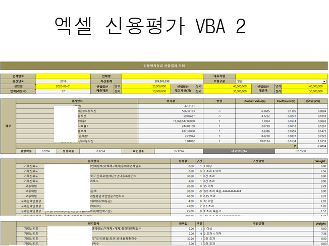 ------------------------------------------엑셀에 프로그래밍 기능(매크로,VBA)이 포함된 각종 문서를 제작해 드립니다.-------------------------------------------> 엑셀을 매크로(VBA)를 활용한 각종 업무(사무)자동화 시스템을 제작해 드립니다.-> 엑셀문서와 연동되어 다양한 프로그래밍적인 기능을 추가할수 있습니다.-> Java,C++,MFC,Html,Script등으로 구현하는 프로그래밍 기능을 엑셀에 추가하여, 엑셀본연의 기능에 여러가지 다양한 기능들을 추가할 수 있습니다.엑셀에 추가될 수 있는 프로그래밍 기능들은 아래와 같습니다.-> 평가시뮬레이션기능(신용평가,스코어카드,각종MockUp)-> 각종DATA분석기능(TEXT/CSV 파일,DB,비정형데이터,등등)-> 크롤링기능(스크롤링기능/웹크롤링기능)-> 주식매매기능(API연동)/자동매매기능-> 싸이트예약기능(예약 매크로기능)-> 일반업무기능(재고,인사,CRM,SCM,등등)-> 고난이도 프로그램 기능가능-> 타이머구현 -> 쓰레드작업 -> 소켓통신 -> 타프로그램연동(JAVA,C++,등등) -> 대용량파일작업(TEXT,CSV,각종텍스트파일) -> 웹싸이트연동 -> 인터넷연동 -> DB(오라클,MS-SQL,MySQL,Maria,Postgre,...)연동 -> 각종 유저폼 -> 이벤트후킹(마우스,키보드,기타장치,..)------------------------------------------20년 경력의 각종 프로그램경험(C++,JAVA,Visual Basic,…)을 가지고 있습니다.------------------------------------------->금융권업무 -> 신용평가(BRR/CRR),기업신용평가/개인신용평가 -> 리스크관리시스템,리스크모니터링 -> 신용평가MockUp(엑셀VBA) -> 웹서비스제공,내부업무시스템 -> CSS/BSS, 룰Based 시스템 커스터마이징->제조업 그룹웨어(MFC,cgi,VB)->주식공시크롤링(VB)->주식자동매매(VB,엑셀차트)->싸이트예약(VB,스쿨버스 예약)->학원 학습관리 프로그램->안드로이드 앱제작(중고차 직거래)->인터넷채팅(JAVA,jjChating)->...망설이지 말고 부담없이 언제든 의뢰해주세요(의뢰만 해도 됩니다^^)작업진행시 업무경험/노하우/개선사항등 힘닿는데까지 도와드리겟습니다.------------------------------------------------------------------------------------ ------------------------------------------ 1.고객과상담(업무범위및 난이도 파악)2.가격확정/결제3.작업착수4.중간결과물 전달5.피드백6.최종결과물 전달7.수정사항 반영(간단한 사항은 여러번 수정가능)8.수정사항 반영결과물 전달------------------------------------------------------------------------------------------------------------------------------ 기능의 세부적인 요약자료를 준비하시면 좋습니다(볼펜등으로 적어도됩니다) > 준비가 힘들면, 전화상담등으로도 통화하며 고객의 요구사항을 수렴가능합니다. > 착수전에 최대한의 요구사항을 파악가능한것이 좋습니다.