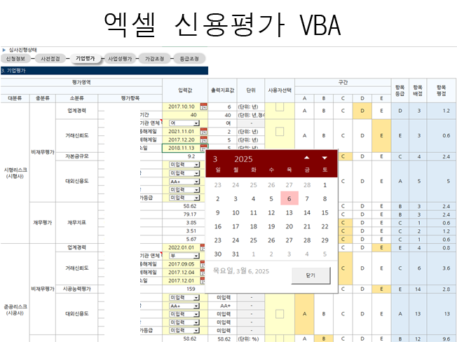 ------------------------------------------엑셀 매크로(VBA)를 활용한 크롤링시스템을 제작해 드립니다.-------------------------------------------> 크롤링(스크롤링)시스템을 제작합니다.-> 엑셀문서와 연동되어 다양한 기능을 구현할 수 있습니다.-> Java,C++,MFC,Html,Script등으로 구현하는 프로그래밍 기능을 엑셀에 추가하여, 엑셀본연의 기능에 여러가지 다양한 기능들을 추가할 수 있습니다.크롤링기능외에도, 아래의 기능들을 추가하여 더 넓은 기능범위의 프로그램(매크로)도 개발가능합니다.-> 평가시뮬레이션기능(신용평가,스코어카드,각종MockUp)-> 각종DATA분석기능(TEXT/CSV 파일,DB,비정형데이터,등등)-> 주식매매기능(API연동)/자동매매기능-> 싸이트예약기능(예약 매크로기능)-> 일반업무기능(재고,인사,CRM,SCM,등등)-> 고난이도 프로그램 기능가능-> 타이머구현 -> 쓰레드작업 -> 소켓통신 -> 타프로그램연동(JAVA,C++,등등) -> 대용량파일작업(TEXT,CSV,각종텍스트파일) -> 웹싸이트연동 -> 인터넷연동 -> DB(오라클,MS-SQL,MySQL,Maria,Postgre,...)연동 -> 각종 유저폼 -> 이벤트후킹(마우스,키보드,기타장치,..)------------------------------------------20년 경력의 각종 프로그램경험(C++,JAVA,Visual Basic,…)을 가지고 있습니다.------------------------------------------->금융권업무-> 신용평가(BRR/CRR),기업신용평가/개인신용평가-> 리스크관리시스템,리스크모니터링-> 신용평가MockUp(엑셀VBA)-> 웹서비스제공,내부업무시스템-> CSS/BSS, 룰Based 시스템 커스터마이징->제조업 그룹웨어(MFC,cgi,VB)->주식공시크롤링(VB)->주식자동매매(VB,엑셀차트)->싸이트예약(VB,스쿨버스 예약)->학원 학습관리 프로그램->안드로이드 앱제작(중고차 직거래)->인터넷채팅(JAVA,jjChating)->등등망설이지 말고 부담없이 언제든 의뢰해주세요(의뢰만 해도 됩니다^^)작업진행시 업무경험/노하우/개선사항등 힘닿는데까지 도와드리겟습니다.------------------------------------------------------------------------------------------------------------------------------ 1.고객과상담(업무범위및 난이도 파악)2.가격확정/결제3.작업착수4.중간결과물 전달5.피드백6.최종결과물 전달7.수정사항 반영(간단한 사항은 여러번 수정가능)8.수정사항 반영결과물 전달------------------------------------------------------------------------------------------------------------------------------ 구현해야할 기능의 세부적인 요약자료를 준비하시면 좋습니다 > 준비가 힘들면, 전화상담등으로도 고객의 요구사항을 수렴가능합니다. > 착수전에 최대한의 요구사항을 파악가능한것이 좋습니다.