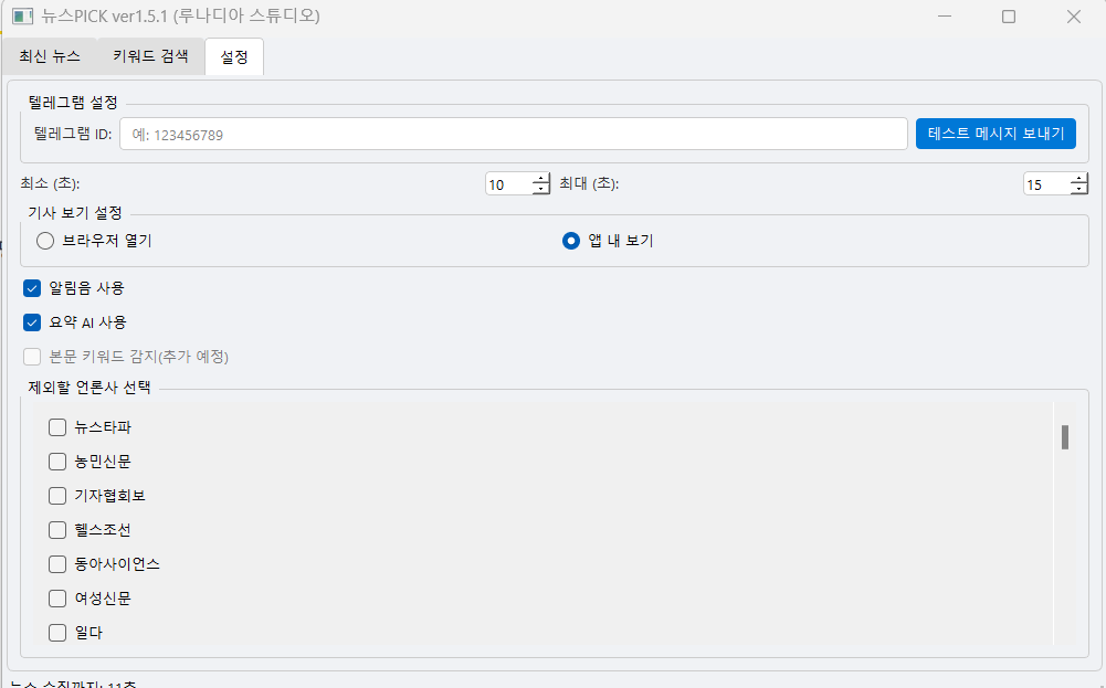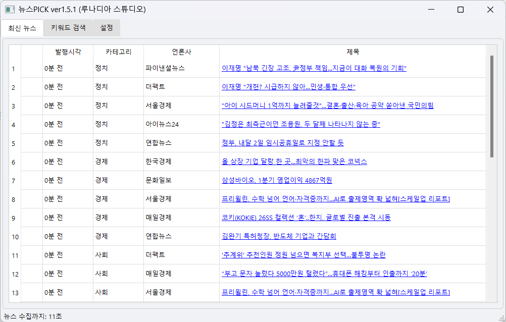 원하는 모든 언론사 뉴스를 한번에 보여주는 프로그램