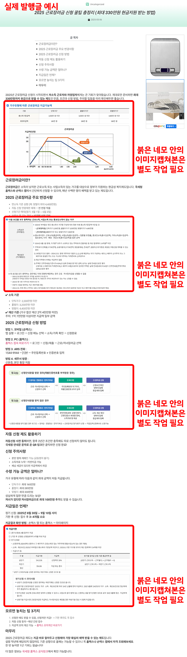 애드센스 승인도 쌉가능!워드프레스 블로그 포스팅 완전 자동화 서비스디럭스 기준 포스팅당 약 222원이런 분께 추천드려요블로그는 만들어놨는데 글 쓸 시간이 도통 없는 분글을 쓰긴 써야 하는데, 뭐부터 써야 할지 모르겠는 분애드센스 승인을 받고 싶은데, 콘텐츠 부족 때문에 고민 중인 분그냥 블로그를 자동으로 굴리고 싶다! 하는 분서비스가 어떻게 돌아가냐면요제가 만든 자동화 시스템은 고객님의 워드프레스 블로그와 Make.com을 연동해서, 블로그 글을 자동으로 써주고 올려주는 서비스입니다.서비스 구매하시면 제가 직접 블로그랑 자동화 시스템을 연결해드려요.그러면 Notion에 키워드를 관리하는 공간이 생기고요,그 키워드로 관련 내용을 검색해서 내용을 분석한 다음,ChatGPT를 통해 새로운 글을 써서 워드프레스에 올려드립니다.처음엔 키워드가 없겠죠? 그래서 자동으로 30개 키워드를 생성해드리고,그 이후에도 키워드가 5개 미만으로 남으면 자동으로 다시 생성되니까고객님은 글감을 고민하실 필요가 없어요.이 서비스가 다른 자동화랑 뭐가 다르냐면요키워드 고민 끝분야만 알려주시면 알아서 생성됩니다. 마음에 안 드는 키워드는 삭제도 가능!설정은 제가 다 해드립니다서비스 구매 후 하루 안에 자동화 연동까지 전부 끝! 고객님은 그냥 기다리시면 돼요.글 쓰는 속도도 조절 가능하루 1개부터 최대 10개까지, 글이 쌓이는 속도는 원하시는 대로 조절할 수 있어요.실제로 애드센스 승인받은 시스템입니다제가 이 시스템으로 블로그 3개 승인받았습니다.그냥 글 많은 블로그가 아니라, 애드센스 심사 통과 가능한 글을 써드리는 거예요.세팅은 언제 되나요?구매 후 하루 안에 모든 설정 완료해드리고, 바로 자동화가 시작됩니다.기타 안내Notion 사용법 모르셔도 괜찮아요. 세팅 후 간단히 설명 드립니다.애드센스 승인을 받았던 블로그는 이미지로 인증해드릴 예정이에요.고객님 블로그에 맞는 포스팅 주제나 방향도 필요하시면 같이 고민해드릴게요.===============================저도 블로그를 운영하면서 수없이 시행착오를 겪어봤고,결국엔 “내가 글 안 써도 자동으로 돌아가는 시스템”을 직접 만들게 됐습니다.이제 그걸 필요한 분들과 나누고 싶어서 이렇게 크몽에 등록하게 되었고요,한 번만 써보시면 “이게 진짜 되네?” 싶으실 거예요.궁금한 게 있다면 언제든지 편하게 문의 주세요.최대한 빠르게, 친절하게 답변드릴게요 :) 서비스 신청 및 결제고객님이 상품을 구매하시면, 제가 24시간 이내에 직접 연락드립니다. 블로그 정보 전달 및 연동 세팅고객님 블로그 관리자 계정 정보를 받아 자동화 세팅을 진행합니다.(Notion 계정이 없으시면 생성 방법도 안내드립니다.) 자동화 시스템 연결 완료워드프레스와 Notion, Make 시스템을 연결하고 세팅을 마무리합니다.이 단계까지는 고객님이 아무것도 안 하셔도 됩니다. 자동으로 키워드 생성 및 포스팅 시작키워드가 없으면 자동으로 30개 생성됩니다.하루 1~10개의 포스팅이 설정한 주기에 따라 자동 발행됩니다. Notion을 통한 키워드/글 관리키워드를 수정하거나, 직접 추가/삭제하실 수도 있습니다.필요 시 사용법도 영상 또는 메시지로 안내드립니다. 운영 중 피드백 및 조정 가능발행 주기나 방향성 등 원하시는 부분은 언제든 조정 가능합니다.중간에 수정 요청도 부담 없이 주셔도 됩니다. 의뢰인 준비사항서비스를 시작하시기 전, 아래 세 가지만 준비해주시면 됩니다1. 워드프레스 블로그이미 블로그가 있으시면 바로 자동화 세팅이 가능합니다.아직 블로그가 없다면, 호스팅/도메인 구매 및 연결 방법도 안내해드릴 수 있으니 편하게 말씀 주세요.2. 워드프레스 관리자 계정 정보자동화 시스템을 블로그와 연결하기 위해 1회 세팅 시 필요합니다.세팅 완료 후에는 더 이상 사용하지 않으며, 보안도 철저히 지켜드리니 걱정하지 않으셔도 됩니다.3. 블로그 주제어떤 주제로 블로그를 운영하고 싶은지만 정해주세요.여행, 생활정보, IT, 뷰티 등 다양한 주제가 가능하지만, 특히 ‘여행’ 주제를 추천드립니다.주제에 따라 키워드도 자동 생성되므로 부담 없이 시작하셔도 괜찮아요! 추가로 이런 것도 가능합니다!워드프레스 블로그 처음 만드시는 분이라면,"자유도는 높지만 어떻게 꾸며야 할지 막막하다"는 생각이 드실 수 있어요.그래서 원하시는 분에 한해,10만 원 추가 비용으로 블로그 디자인/구성 세팅을 도와드립니다.글이 잘 보여지도록 깔끔한 구조로 정리카테고리 및 기본 메뉴 구성대표 썸네일, 프로필 설정 등 블로그 운영을 위한 기본틀 완성자동화만큼이나 블로그의 첫인상도 중요한 만큼, 꼭 필요한 분은 옵션 추가 부탁드립니다!-----------------------------궁금한 점이나 요청사항은 언제든 편하게 문의 주세요.최대한 빠르게 확인하고, 친절하게 도와드릴게요 :)