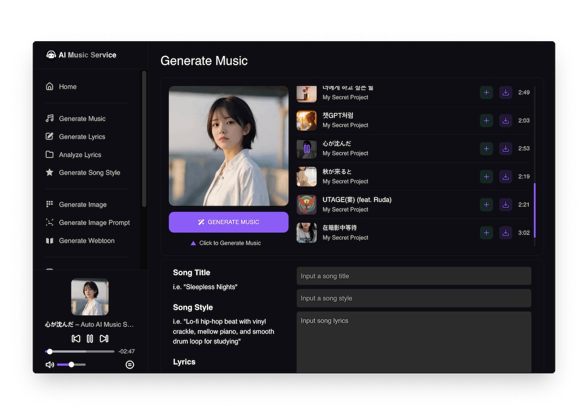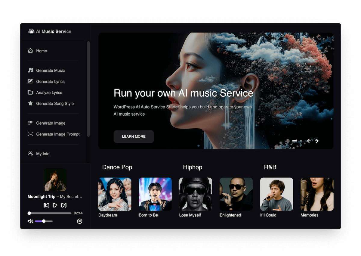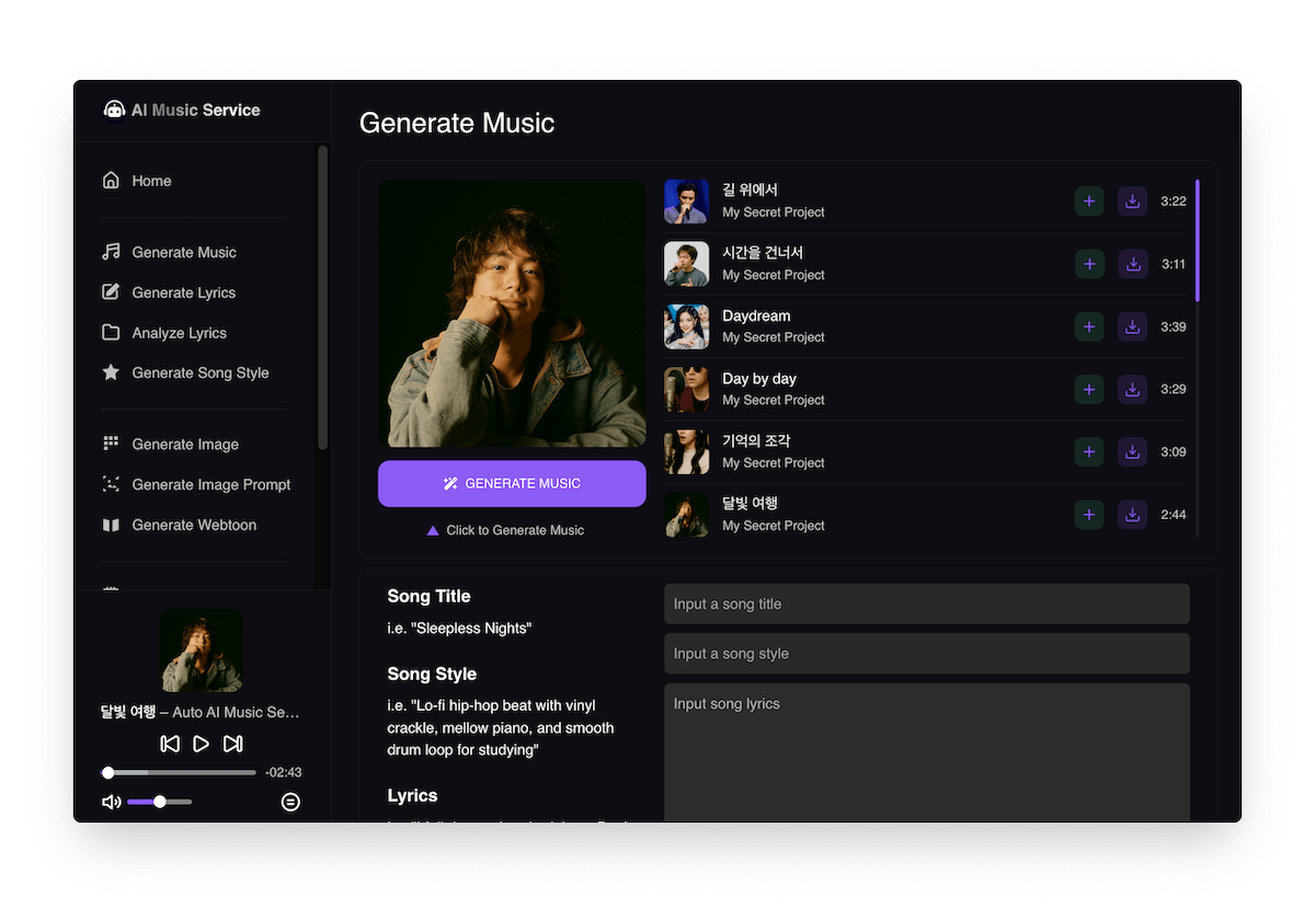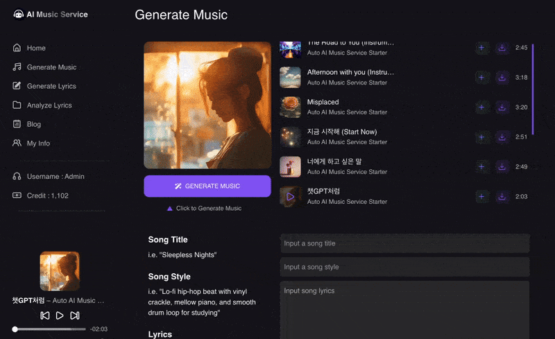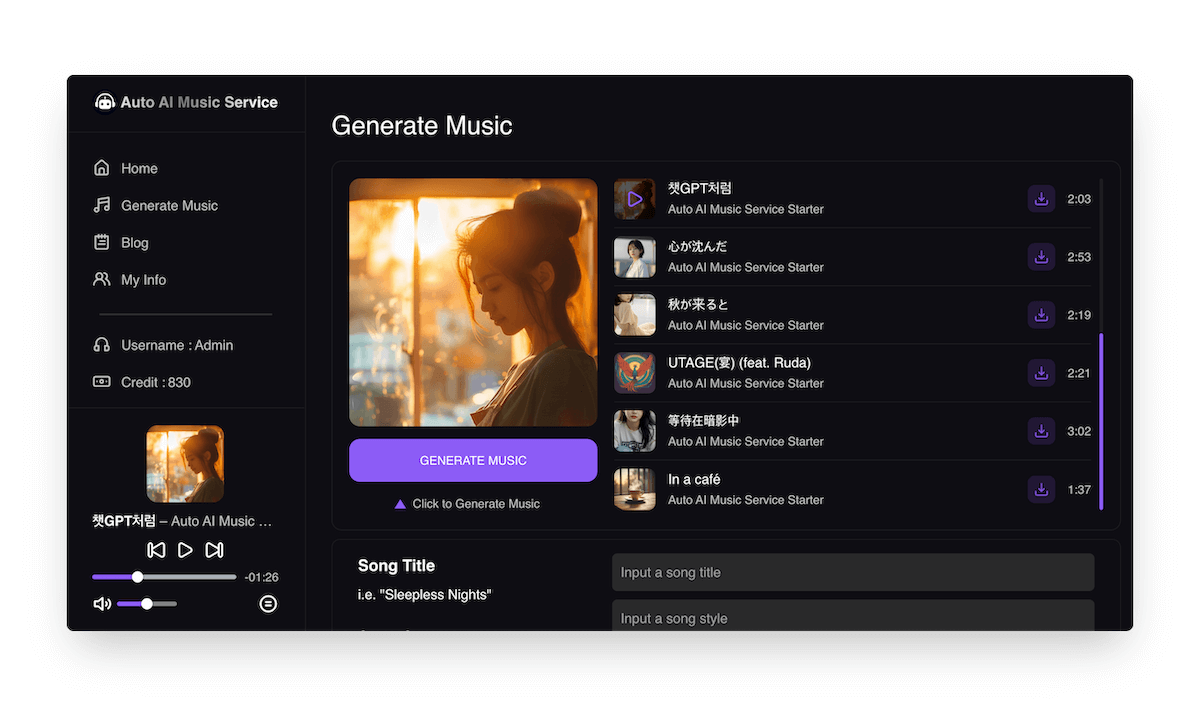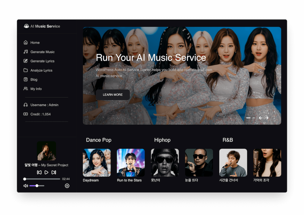 AI 음악 자동생성 워드프레스 웹서비스 제작해 드립니다