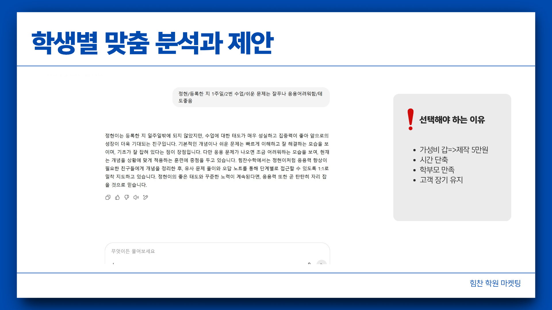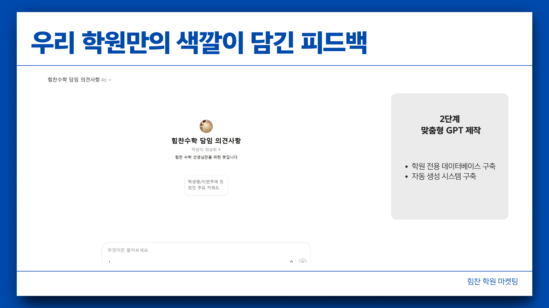 우리 학원 만의 학부모 피드백 용 채봇 gpt 제작