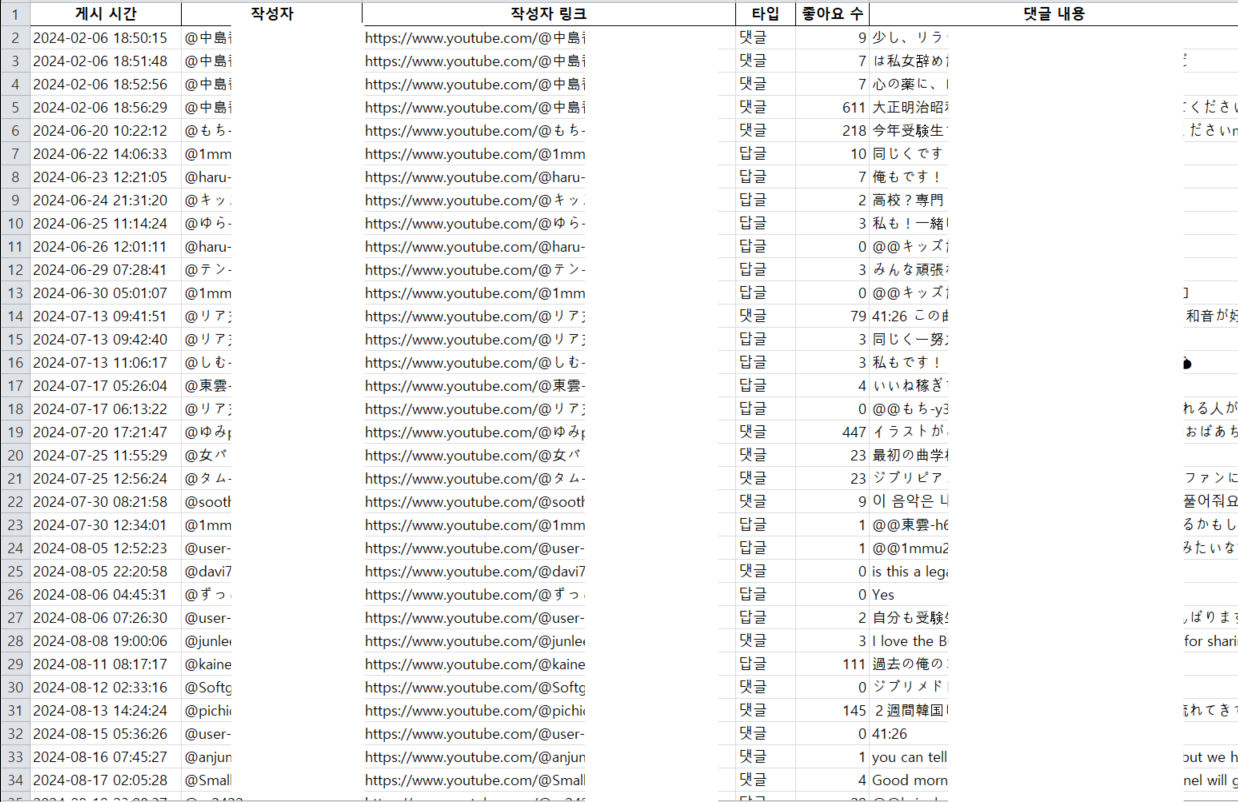 유튜브 댓글 수집 해드립니다
