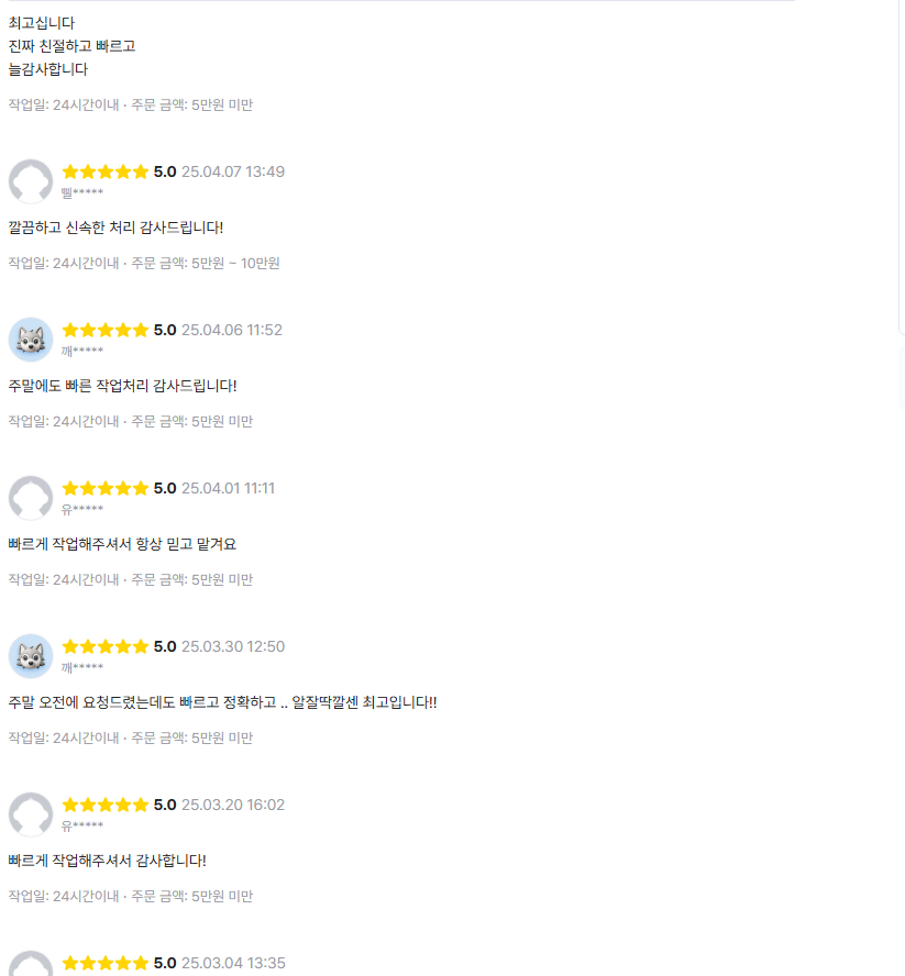 유튜브 댓글 빠르게 수집해서 엑셀 파일로 전달해드립니다!* 1,000개 기준 약 5분 소요[작성시간/ 작성자/ 작성자 링크/ 타입(댓글or답글)/ 좋아요 수/ 댓글 내용]기준으로 건당 40원입니다. *대량(3,000건 이상) 수집 시 할인 됩니다.*기본 수집 항목 중 필요하지 않거나 추가적으로 필요하신 항목이 있다면 따로 문의해주세요.-> 이벤트 정답 or 지정한 키워드 유무 확인, 번역 등아래에 첨부한 이미지에서 샘플 결과물 참고해주세요! 1. 수집이 필요한 영상의 링크를 전달2. 예상 결제 금액 안내(수집 개수 * 40원)3. 수집 작업 진행4. 수집 완료 후 수집 된 개수로 계산하여 결제 요청 드립니다.5. 결과물 전달 수집이 필요한 영상 링크만 전달 해주시면 됩니다.*기본 수집 항목 중 필요하지 않거나 추가적으로 필요하신 항목이 있다면 따로 문의해주세요.
