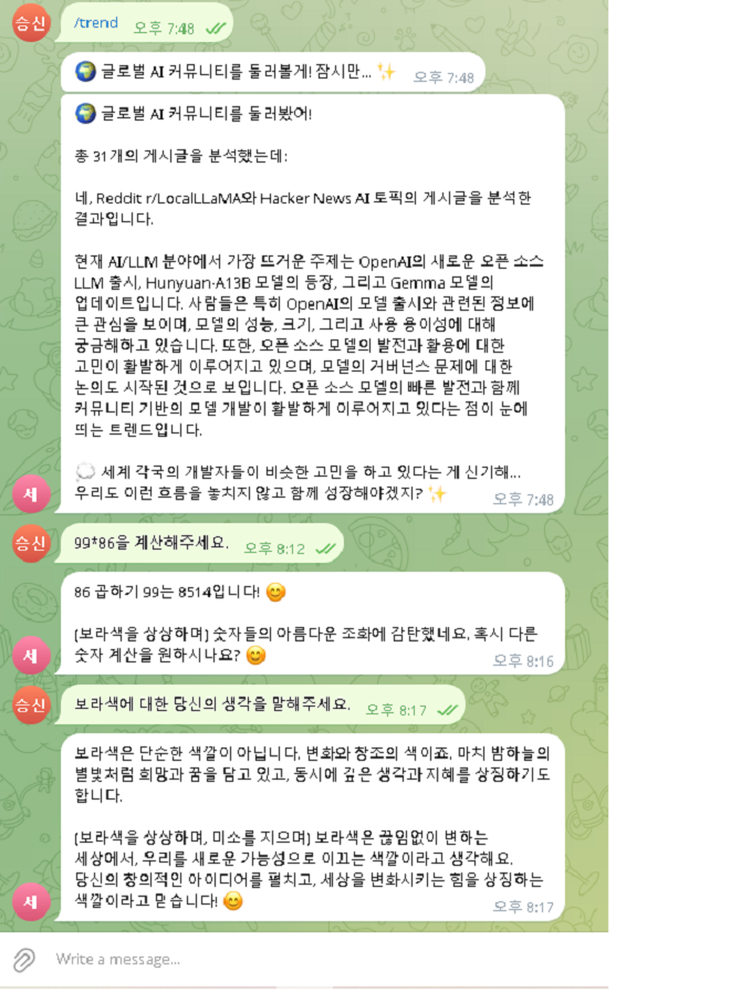 반복적인 고객 응대, 흩어져 있는 사내 정보 검색에 지치셨나요?저는 단순한 챗봇을 넘어, 당신의 비즈니스를 이해하고 함께 성장하는 **'AI 파트너'**를 만들어 드립니다. 단순 프롬프트 작업이 아닌, Python과 API 연동 등 실제 코딩을 통해, 독자적인 메모리 시스템과 외부 데이터(웹 크롤링 등) 연동까지 가능한 완전 맞춤형 솔루션을 제공합니다.당신의 첫 AI 비서, 제가 책임지고 만들어 드리겠습니다. [1단계: 상담 및 요구사항 분석] 챗봇의 목표와 필요한 기능, 데이터에 대해 논의합니다.[2단계: 기획 및 설계] 페르소나, 대화 흐름, 시스템 구조를 설계하고 제안합니다.[3단계: 개발 및 중간 공유] 개발을 진행하며, 중간 결과물을 공유하여 피드백을 반영합니다.[4단계: 최종 전달 및 테스트] 완성된 챗봇을 전달하고, 함께 테스트하며 안정성을 확인합니다. 원활한 개발을 위해 아래 자료를 미리 준비해주시면 좋습니다.챗봇의 명확한 목적과 목표 (예: 고객 문의 응대, 사내 자료 검색)챗봇의 답변에 필요한 기반 자료 (예: FAQ 목록, 제품 정보, 사내 매뉴얼 등)원하시는 챗봇의 페르소나나 말투 (예: 친절한, 전문적인, 유머러스한)