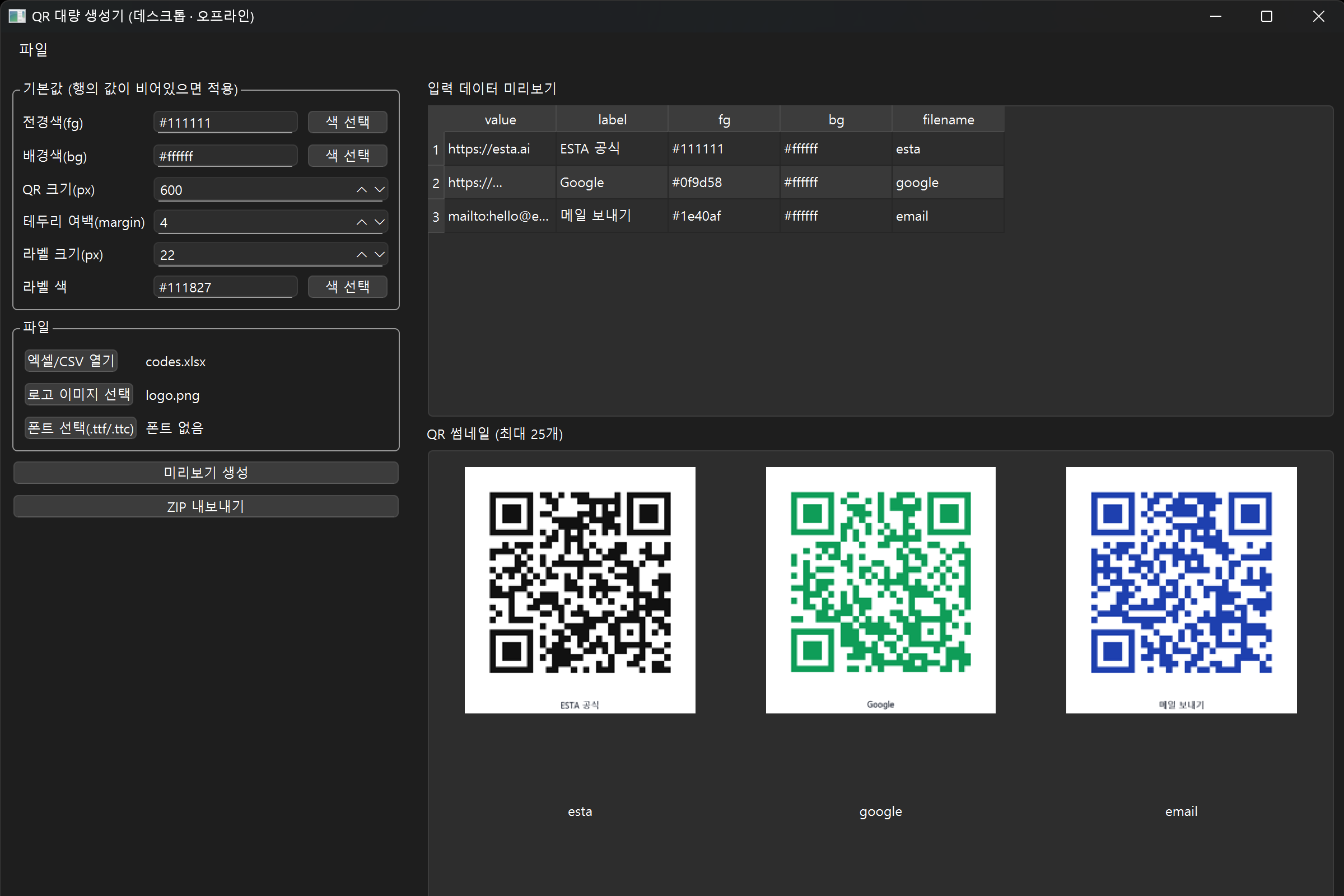 오프라인 QR 코드 대량 생성기