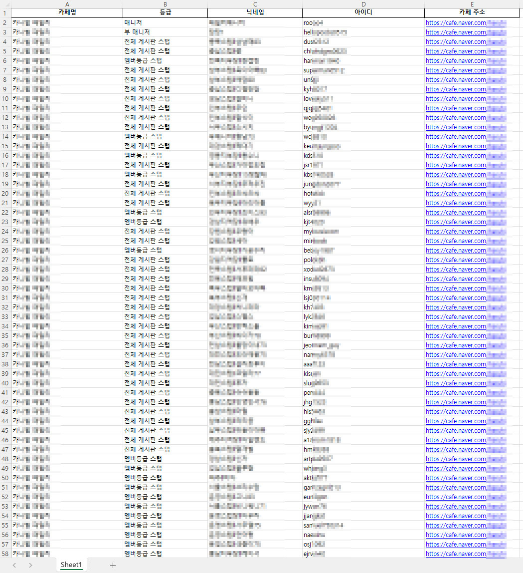 N사 카페 매니저/스탭 DB 추출 프로그램 드립니다.