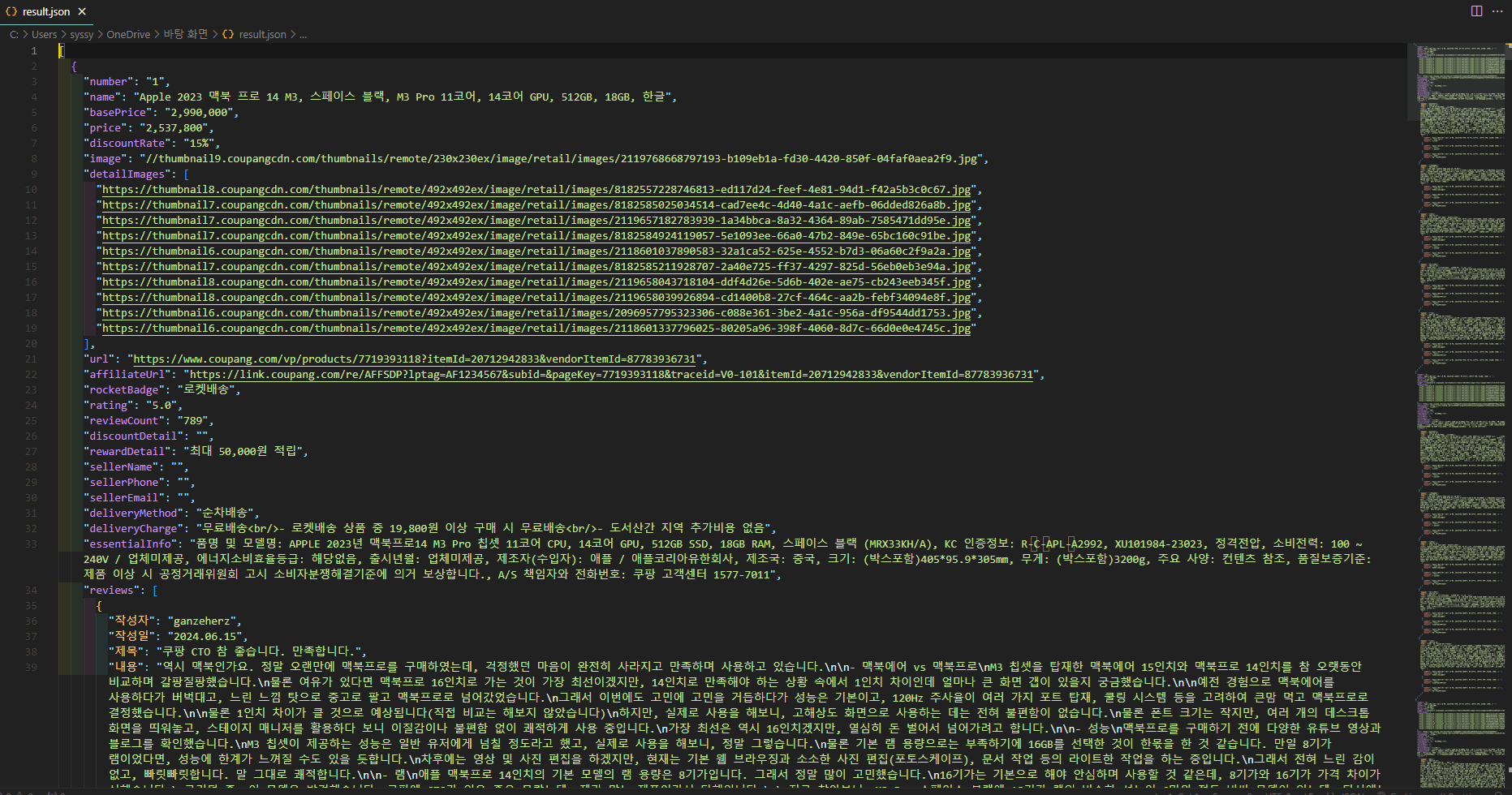 쿠팡 상품 데이터 추출해드립니다. URL까지