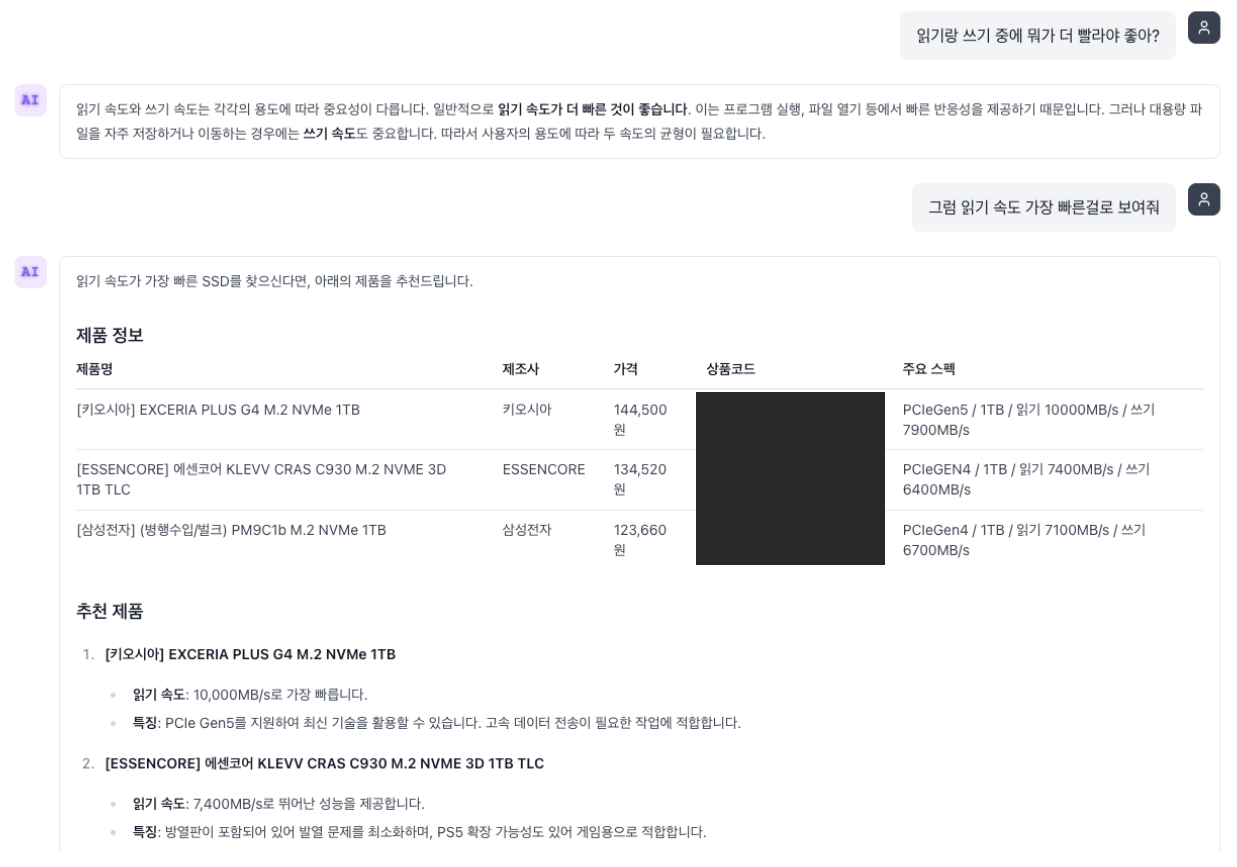 LangChain/LangGraph 기반 AI 에이전트 시스템을 개발합니다.복잡한 업무를 스스로 판단하고 수행하는 AI 에이전트를 LangChain/LangGraph로 구현하여, 실제 비즈니스에 즉시 적용 가능한 AI 시스템을 제공합니다.[이런 AI 시스템을 만들 수 있습니다]1. AI 상품 검색/추천 에이전트복잡하고 모호한 사용자의 의도를 파악하여 최적의 상품을 검색, 비교, 추천하는 AI (멀티턴 대화 가능)2. 사내/CS용 RAG 시스템PDF, 매뉴얼, 사내 DB 데이터를 기반으로 정확한 답변을 제공하는 AI 챗봇3. 복합 업무 처리 에이전트스스로 계획하고 추론하며 여러 단계를 거쳐 복잡한 업무(데이터 조회, 비교, 리포팅)를 수행하는 AI[보유 핵심 기술]AI Core: LangChain, LangGraph (멀티 에이전트 설계)Backend: FastAPI, FastMCP, PythonDatabase: PostgreSQL, MySQL, SQLite (채팅 로그, 사용자 데이터 관리)기타: SDK 연동 (Google A2A 등), API 설계 및 인증 관리※ 개발된 AI 시스템은 API 형태로 제공되며, 귀사의 기존 시스템이나 웹사이트에 연동 가능합니다.[선택 옵션]간단한 테스트용 웹 인터페이스 제공 (별도 협의) 1. 무료 상담 및 요구사항 분석아이디어, 해결하려는 문제, 원하는 기능을 구체화합니다. 학습/연동해야 할 데이터(PDF, DB 등)를 확인합니다.2. 기획, 견적 및 개발 일정 확정요구사항을 바탕으로 기능 명세, 기술 스택, AI 에이전트 흐름을 정의합니다. 최종 견적과 개발 일정을 산정하여 제안합니다.3. 결제 및 개발 착수결제 확인 후, 백엔드(DB, API) 및 AI 로직(LangGraph) 설계를 시작합니다.4. 1차 데모 (핵심 기능 시연)AI 모델과 백엔드 연동이 완료된 핵심 기능(RAG, Agent)을 시연합니다. 중간 피드백을 받아 수정/보완합니다.5. AI 시스템 통합 테스트전체 AI 시스템의 안정성 및 성능 테스트를 진행합니다.6. 최종 산출물 전달개발된 AI 시스템(API 엔드포인트 또는 소스코드)을 전달합니다. 연동 가이드 및 API 문서를 제공합니다.[옵션] 유지보수 및 고도화 모델 성능 개선, 기능 추가 등 지속적인 유지보수 계약 체결 (별도 협의) 1. AI로 해결할 '핵심 문제' (가장 중요)AI가 왜 필요한가요? 어떤 문제를 해결하고 싶으신가요? (예: 상품 검색 이탈률이 높음, CS 응대에 리소스가 너무 많이 듦)2. AI가 응답시 참조할 데이터AI가 답변의 근거로 삼아야 할 데이터를 준비해 주세요. (예: 사내 매뉴얼 PDF, FAQ 엑셀 파일, 상품 정보가 담긴 DB 접근 정보)3. 시스템 연동 방식개발된 AI를 어떻게 사용하실 계획인가요? (예: 기존 웹사이트에 API로 연동, 독립 실행형 시스템)[선택] 벤치마킹/참고 서비스 생각하고 계신 것과 유사한 서비스의 URL이나 자료가 있다면 전달해 주세요.