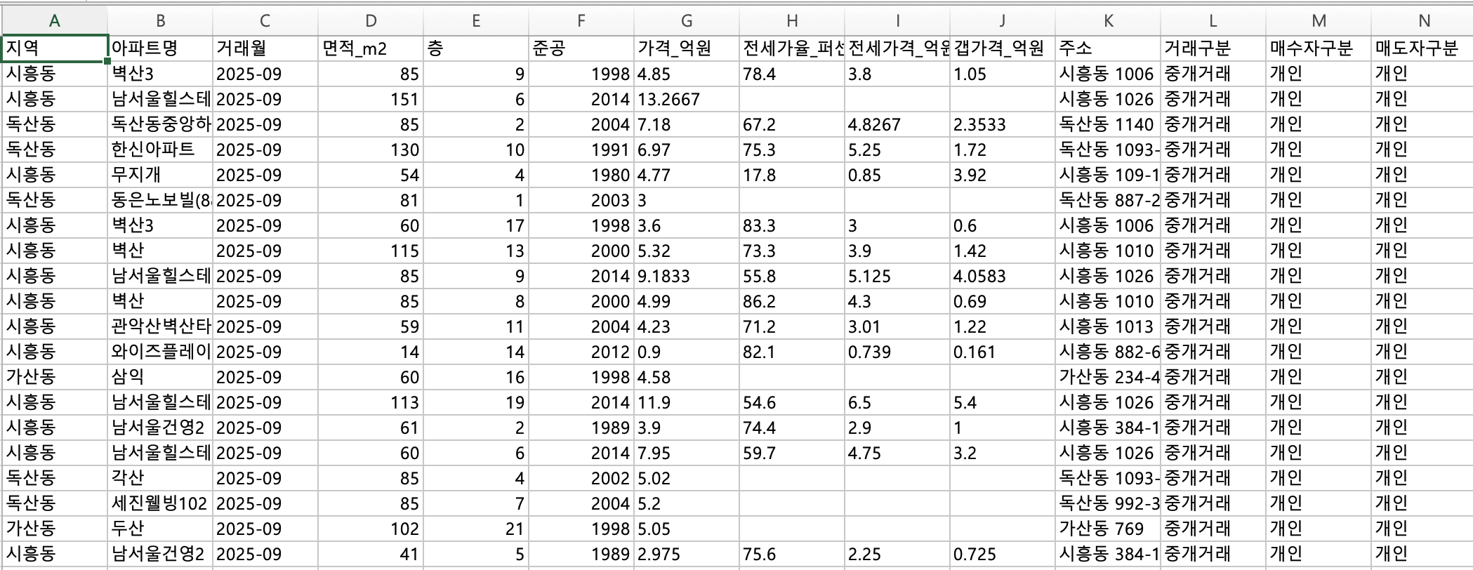 아파트/빌라 매매/통계 데이터 엑셀 정리해드립니다.