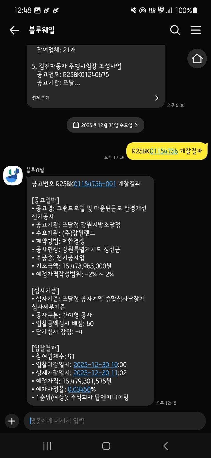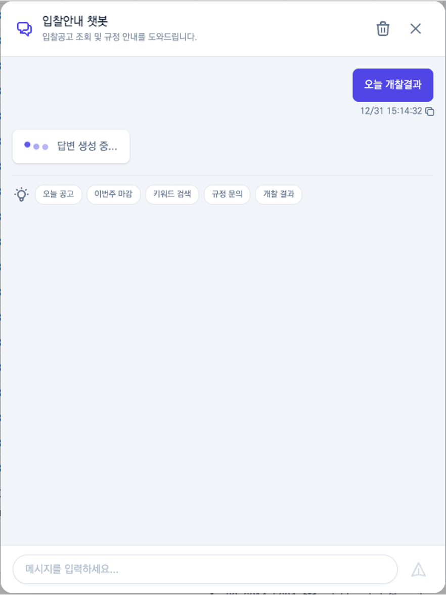 카카오톡 챗봇이 필요하신가요?서비스에 AI 기능을 추가하고 싶으신가요?풀스택 개발자가 챗봇을 깔끔하게 구현해드립니다.[ 이런 분께 추천드립니다 ]카카오톡 채널 자동응답이 필요한 분상담접수/AS접수/문의 챗봇이 필요한 분서비스에 AI 챗봇을 추가하고 싶은 분AI 기반 기능을 PoC로 만들어보고 싶은 분[ 작업 범위 ]1. 카카오톡 챗봇 라이트- 카카오톡 채널 챗봇 (버튼 선택형)- 메뉴 구성 + 자동응답 시나리오 + 접수 폼2. AI 챗봇 스탠다드- AI 연동 챗봇 (웹 또는 카카오톡)- 자유 입력 AI 자동응답 + 대화 히스토리3. AI 챗봇 풀패키지- AI 챗봇 + 카카오톡 연동 + 관리자 페이지- 다중 기능 + 사용량 모니터링 + 텍스트 요약[ 구현 가능 기능 ]1. 카카오톡 챗봇- 버튼 선택형 자동응답- 상담/AS/문의 접수 폼- 알림톡 연동2. AI 챗봇- 자유 입력 AI 자동응답- 대화 히스토리 저장- 커스텀 프롬프트 설정3. 텍스트 처리- 텍스트 요약- 텍스트 생성[ 지원 AI API ]- OpenAI (GPT-4, GPT-3.5)- Anthropic (Claude)- Google (Gemini)- 카카오 i (카카오톡 연동)[ 기술 스택 ]- Frontend: React, TypeScript- Backend: Node.js, Spring Boot- AI: OpenAI API, Claude API, Gemini API- 카카오: 카카오톡 채널, 카카오 i 오픈빌더[ 안내 사항 ]- AI API 비용은 별도입니다. (고객사 API 키 사용)- 카카오톡 채널은 사전에 개설되어 있어야 합니다.- 프로젝트 완료 후 2주간 무상 버그 수정- 소스코드는 완료 후 전달드립니다.문의 주시면 친절하게 상담드리겠습니다! [ STEP 1. 요구사항 확인 ]크몽 메시지로 필요한 챗봇 기능에 대해 말씀해주세요.- 플랫폼 (카카오톡 / 웹 / 둘 다)- 응답 방식 (버튼 선택형 / AI 자동응답)- 필요한 기능 (접수 폼, 알림, 관리자 페이지 등)- 예산, 일정[ STEP 2. 견적 및 일정 협의 ]요구사항 기반으로 상세 견적과 일정을 안내드립니다.협의 완료 후 결제 진행합니다.[ STEP 3. 개발 착수 ]결제 확인 후 개발을 시작합니다.- 라이트: 카카오 i 오픈빌더 설정 + 시나리오 구성- 스탠다드/풀패키지: AI API 연동 + 챗봇 개발[ STEP 4. 중간 확인 ]테스트 환경에서 챗봇 동작을 확인하실 수 있습니다.피드백 주시면 반영합니다.[ STEP 5. 테스트 및 수정 ]다양한 시나리오로 테스트 후 수정사항 반영합니다.[ STEP 6. 배포 및 인수 ]실서비스 연동 및 소스코드 전달드립니다.간단한 사용법 및 관리 방법 안내드립니다. [ 필수 ]- 챗봇 용도 (상담접수, AS접수, FAQ 등)- 연동 플랫폼 (카카오톡 / 웹 / 둘 다)- 희망 일정[ 카카오톡 챗봇 시 ]- 카카오톡 채널 개설 (없으면 개설 방법 안내드립니다)- 카카오 비즈니스 계정[ AI 챗봇 시 ]- OpenAI / Claude / Gemini API 키 (없으면 발급 방법 안내드립니다)[ 있으면 좋아요 ]- 메뉴 구성안 또는 응답 시나리오- FAQ 목록- 참고 챗봇 또는 레퍼런스- 로고, 프로필 이미지※ 없어도 괜찮습니다. 상담하며 함께 정리해드립니다.
