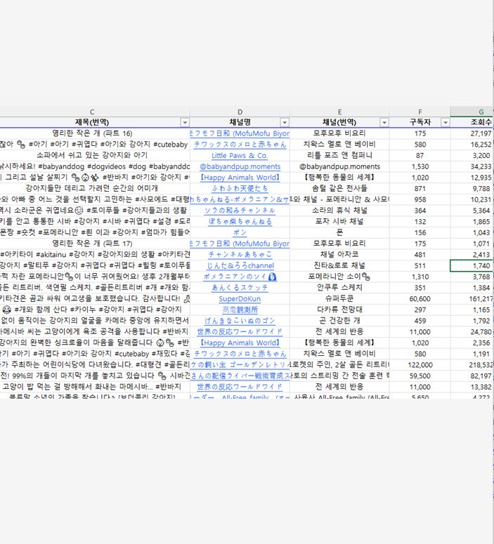 유튜브 글로벌 떡상 분석기 /웹스캔+엑셀 다운로드