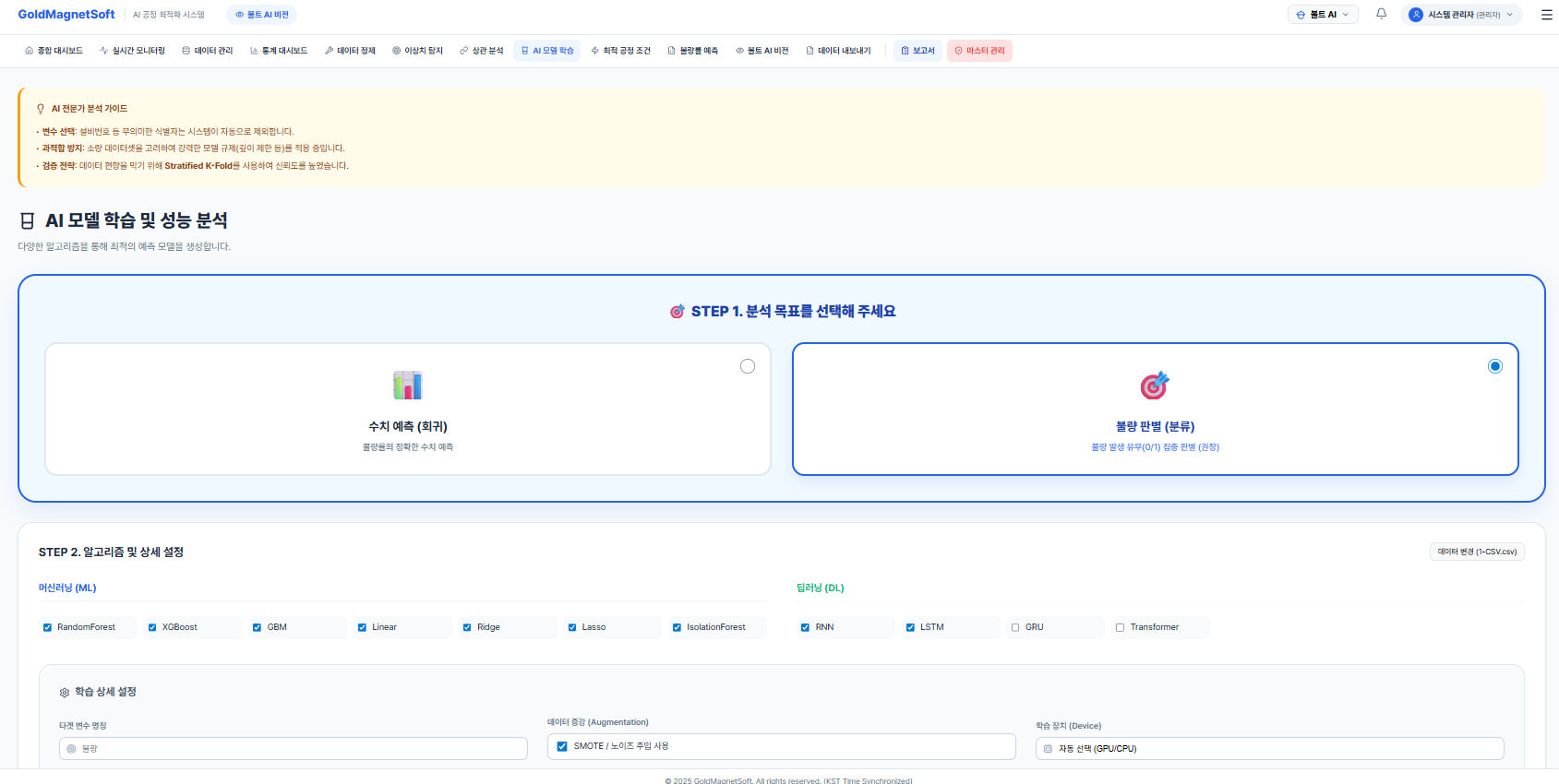 공정 최적화 AI 및 품질 관리 웹 앱 개발 솔루션